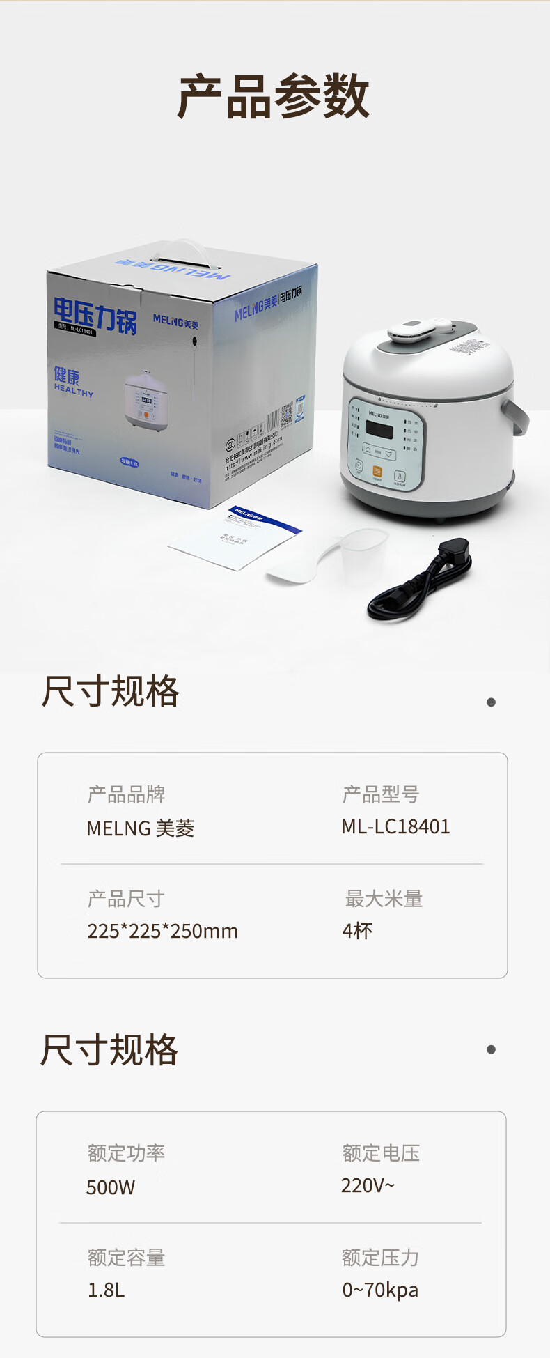 商品名称:美菱 电压力锅 5L ML-LC5002
