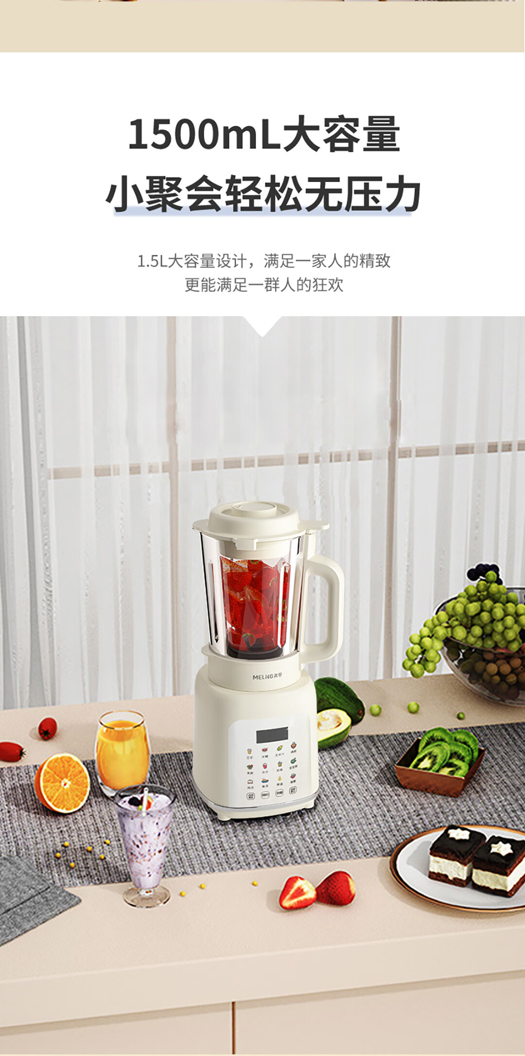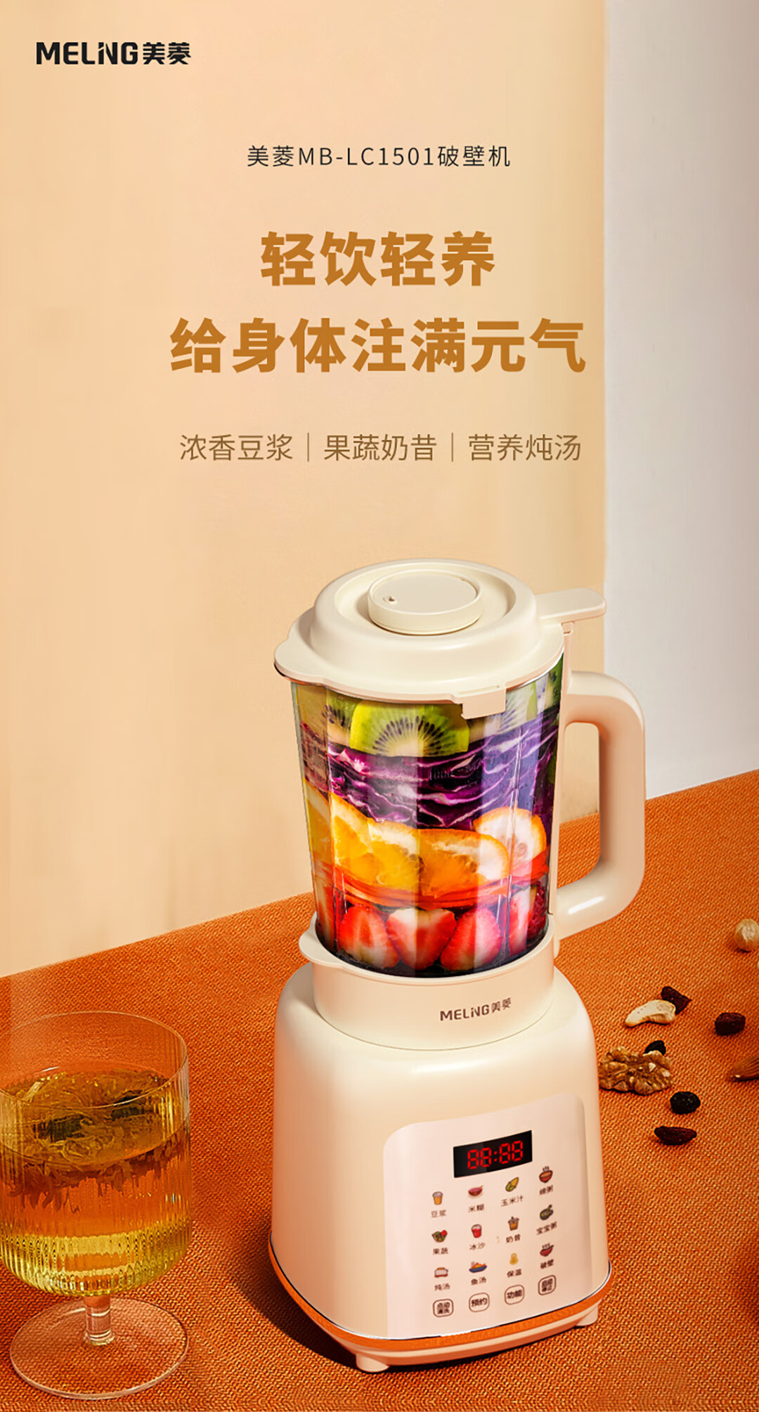 商品名称:美菱 加热破壁营养料理机 1500mL MB-LC1501