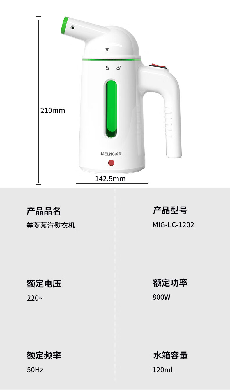 商品名称:美菱 蒸汽熨衣机(手持挂烫机) 800W MB-LC1501