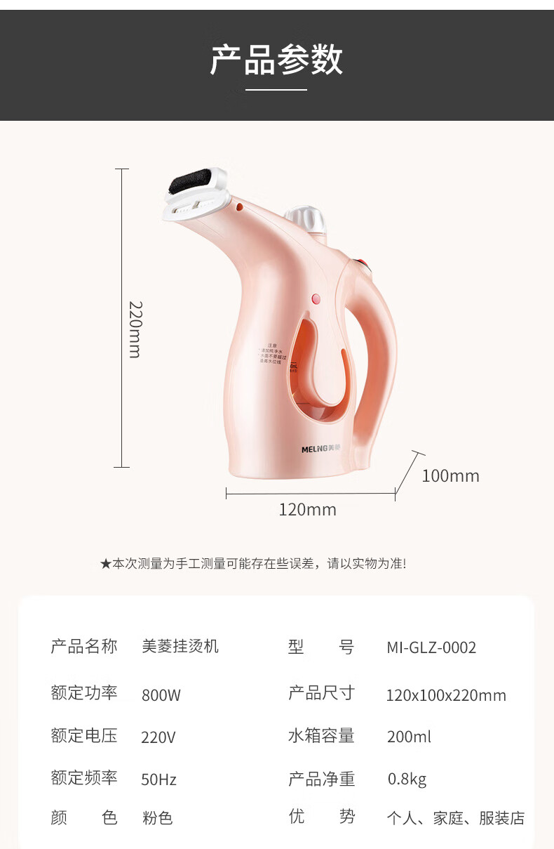 商品名称:美菱 蒸汽熨衣机(手持挂烫机) 800W MI-GLZ-0002