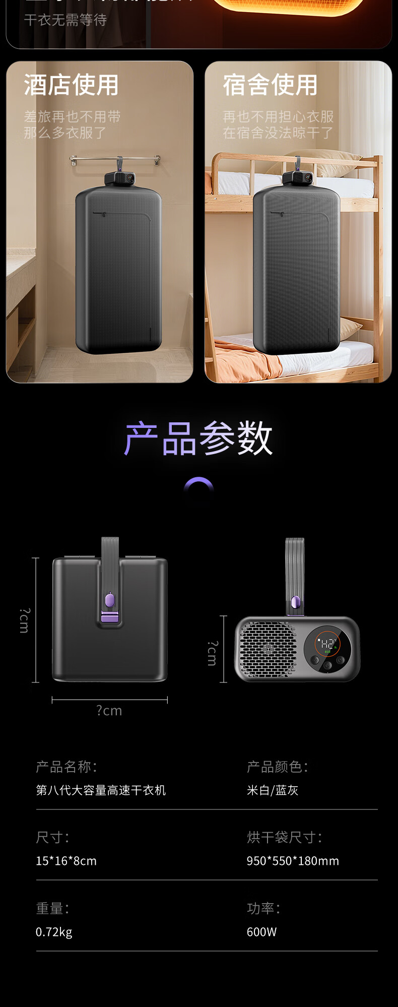 商品名称:米贝丽 便携折叠干衣机 600W GY08