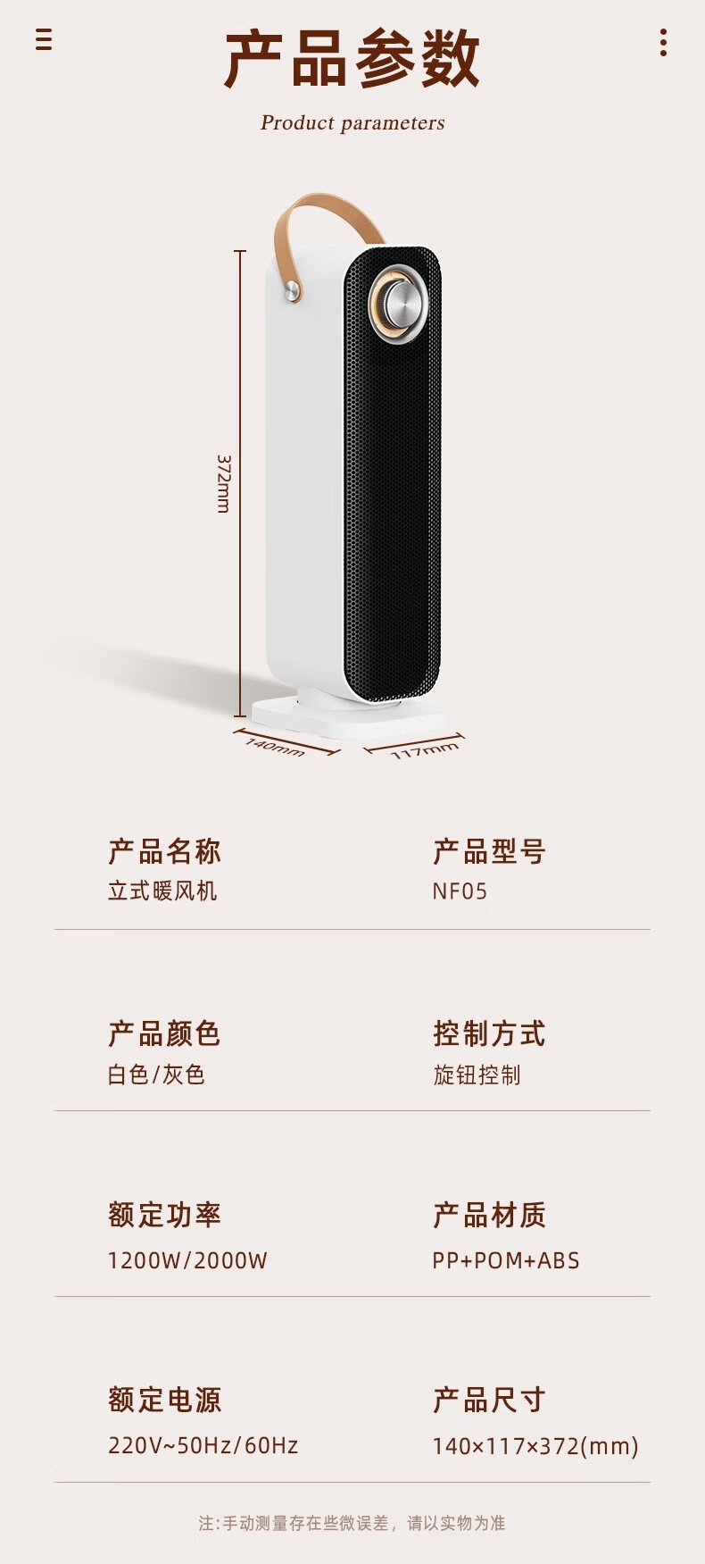 商品名称:米贝丽 立式冷暖风机 2000W NF05-A12