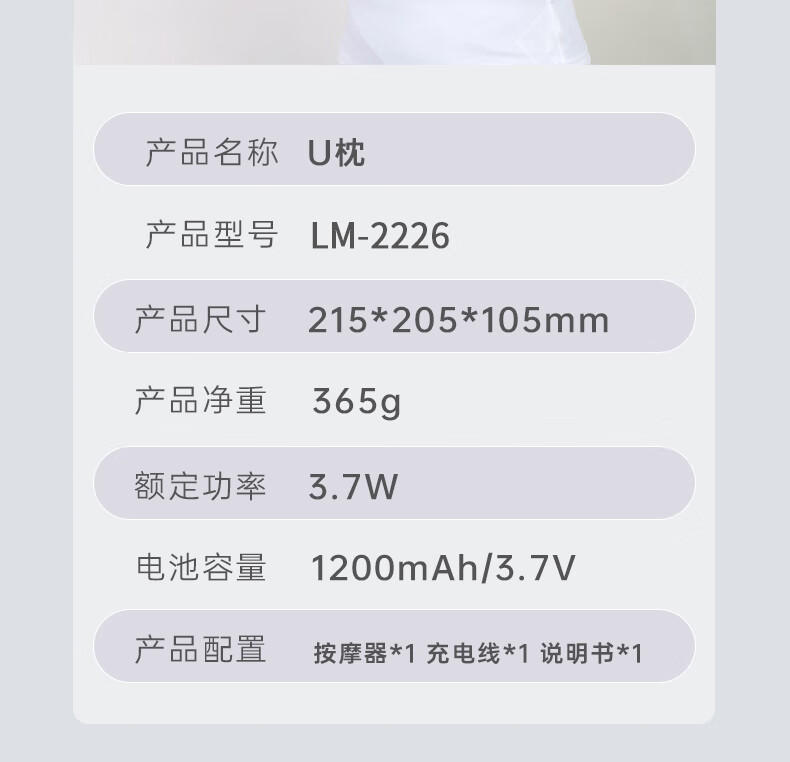 商品名称:米贝丽 U枕按摩仪 3.7W LM-2226
