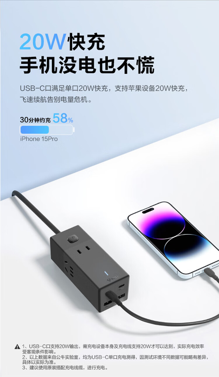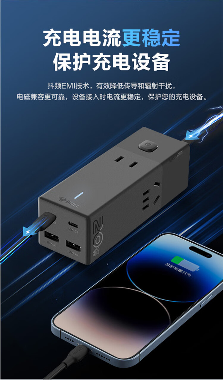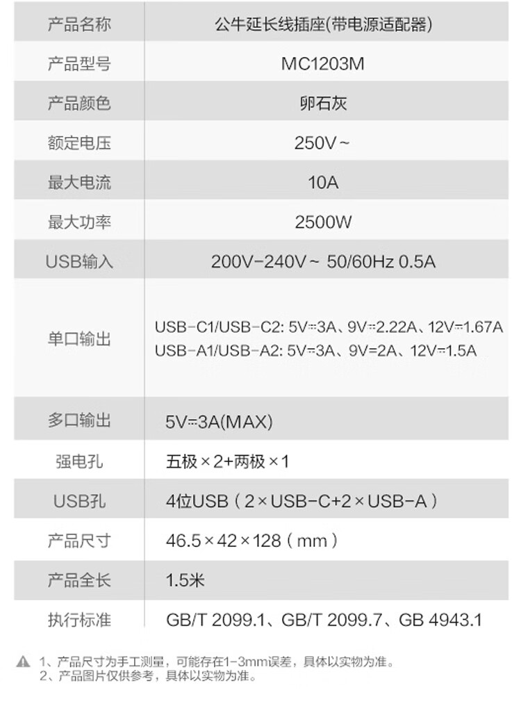 商品名称:公牛 USB便携插座 (带开关) MC1203
