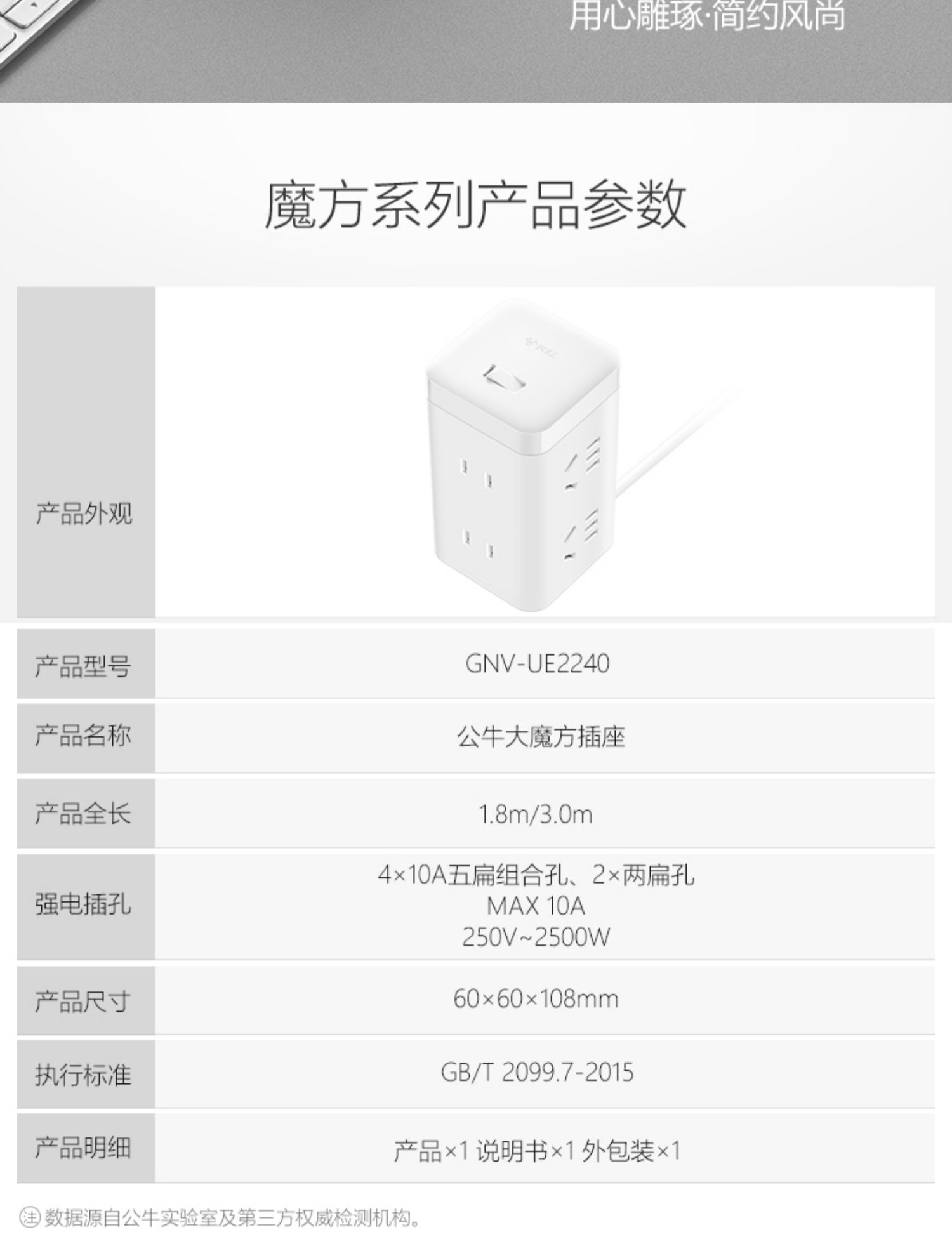 商品名称:公牛 大魔方插座 1.8m UE2240