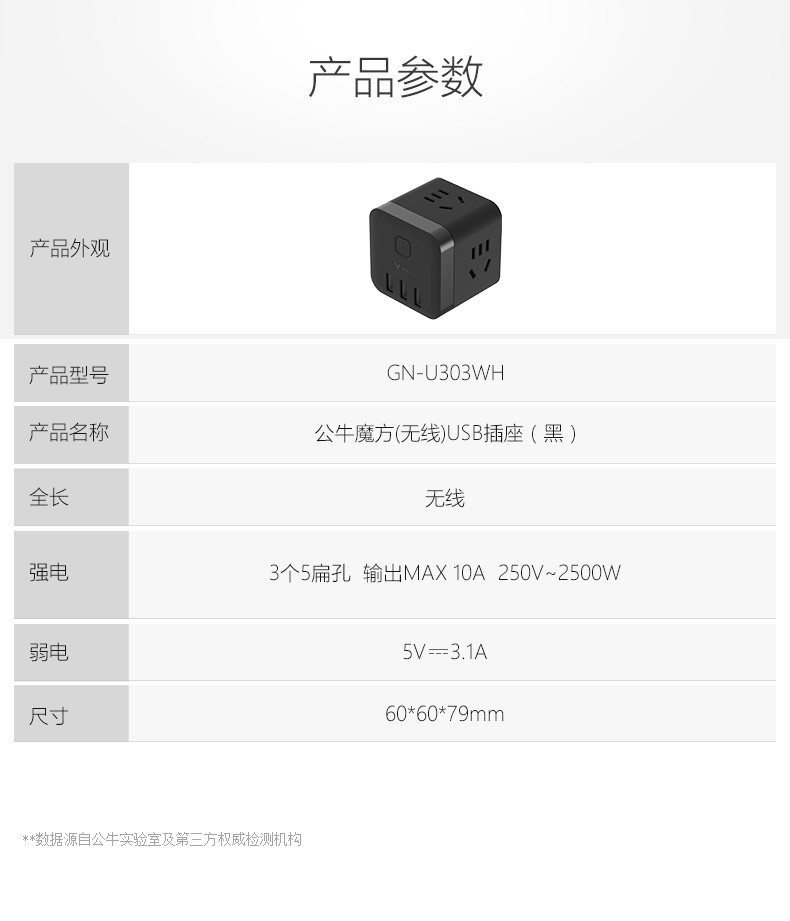 商品名称:公牛 魔方USB插座 U303H