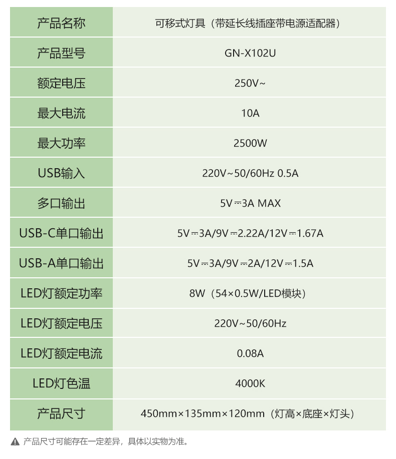 商品名称:公牛 插座台灯 GN-X102U