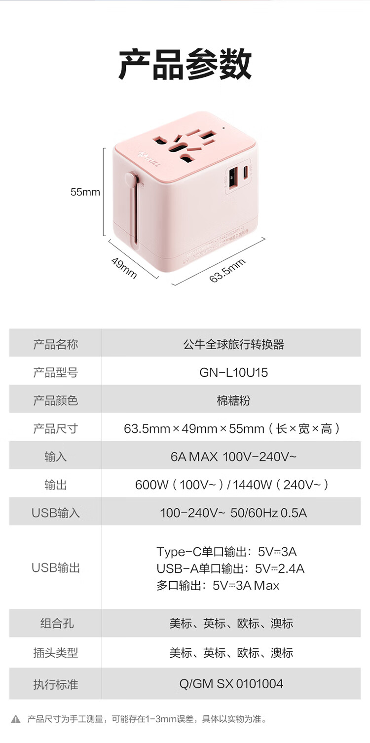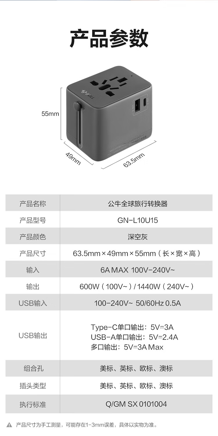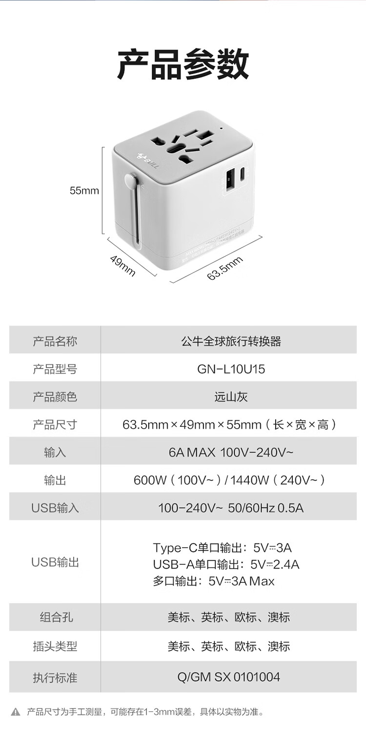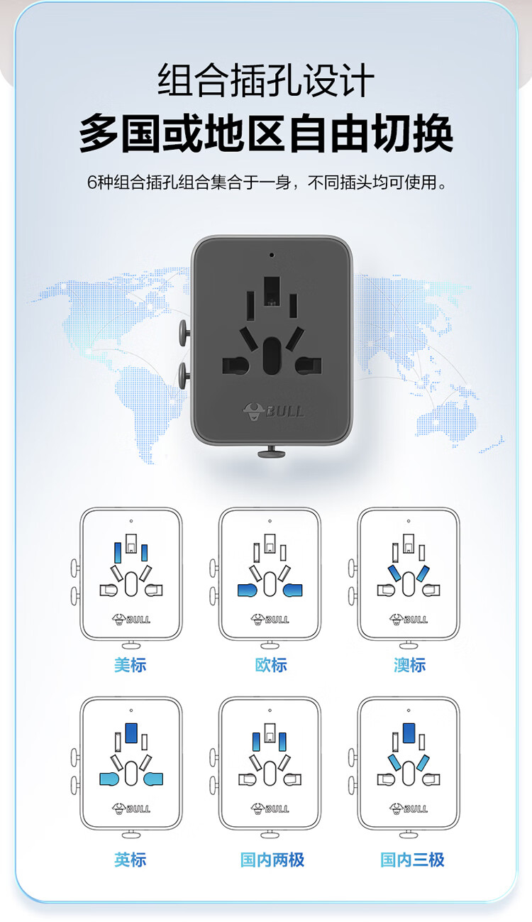 商品名称:公牛 全球旅行USB转换器 GNV-L10U15