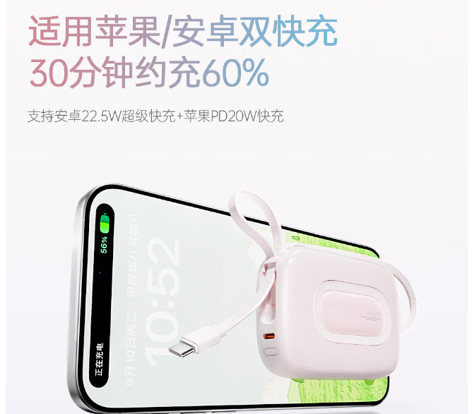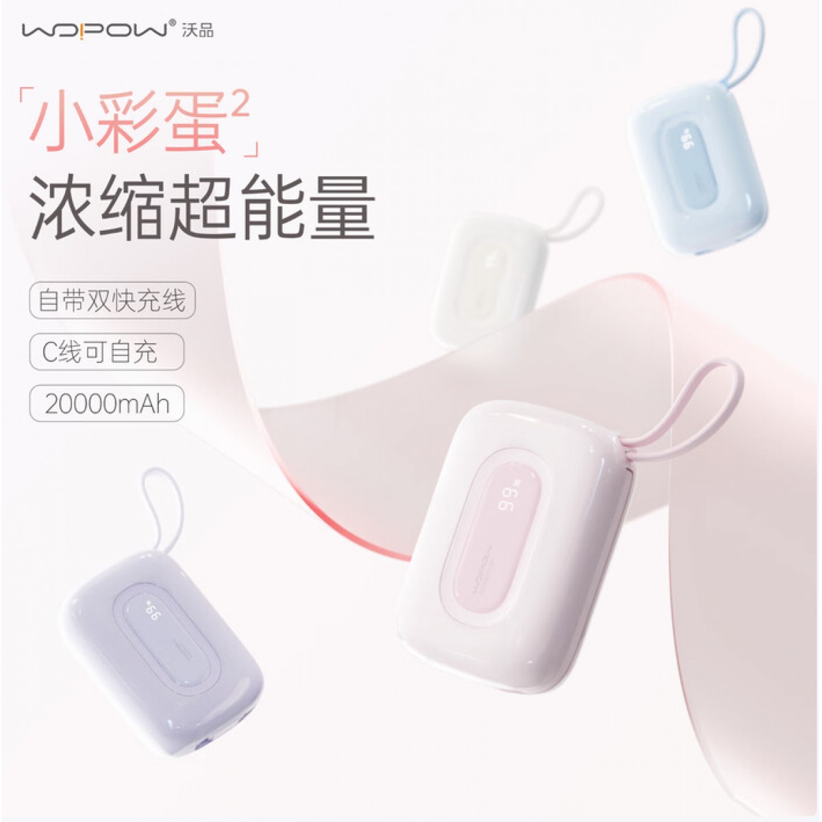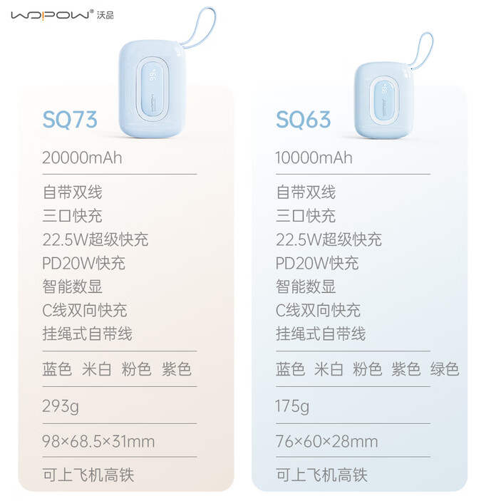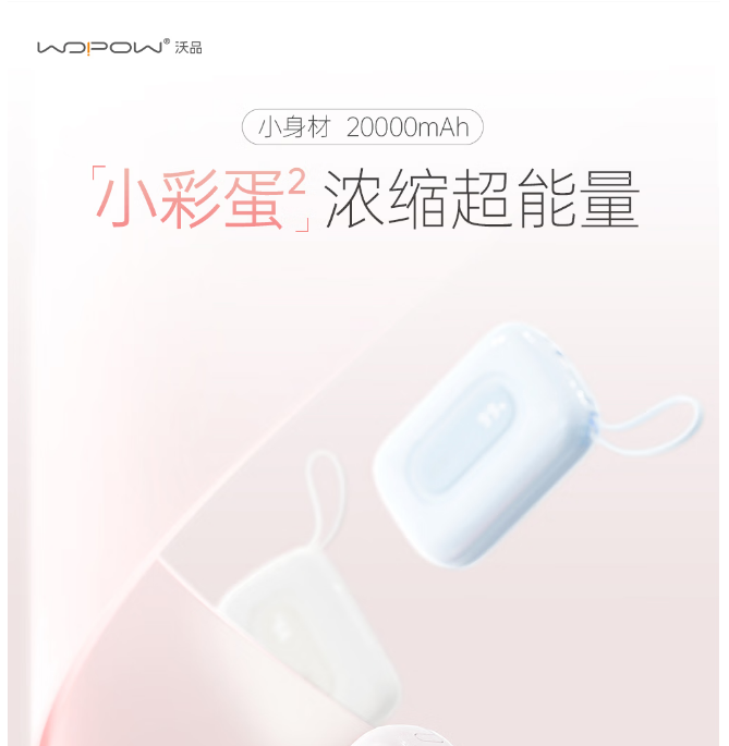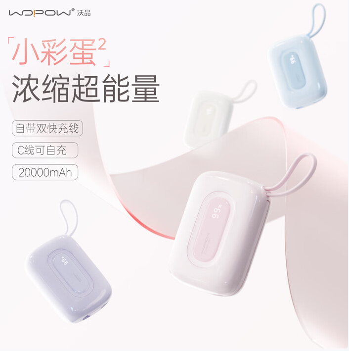 商品名称:沃品(WOPOW)【3c认证】小彩蛋充电宝 大容量22.5w快充自带线可上飞机20000mAh SQ73 (电商款)