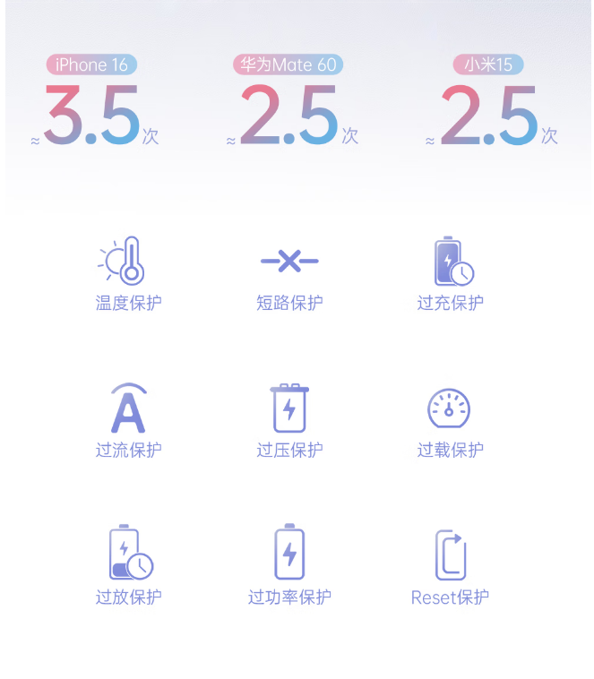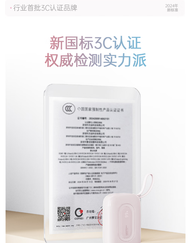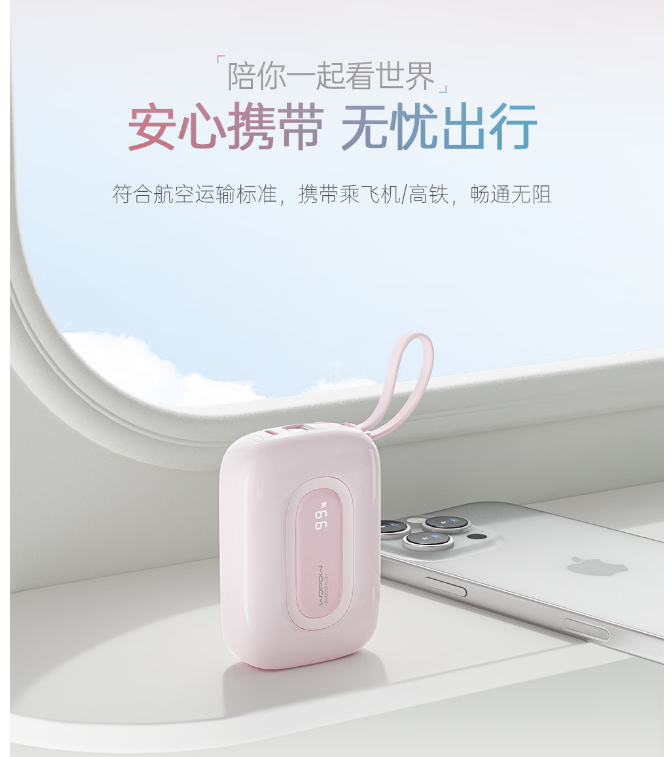 智能数显,随时掌握剩余电量。符合移动电源新国标标准,94V0级防火外壳,登机安全无忧
