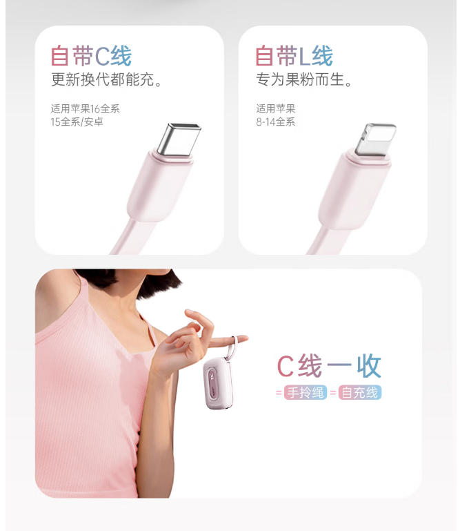 自带充电线 :TYPE-C+Lightning(二种)