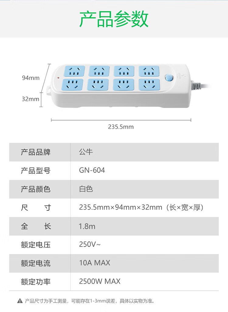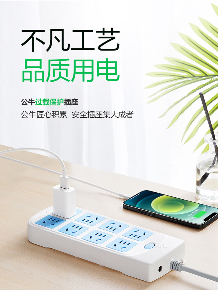 商品名称:公牛 新国标过载保护插座 5米 GN-604