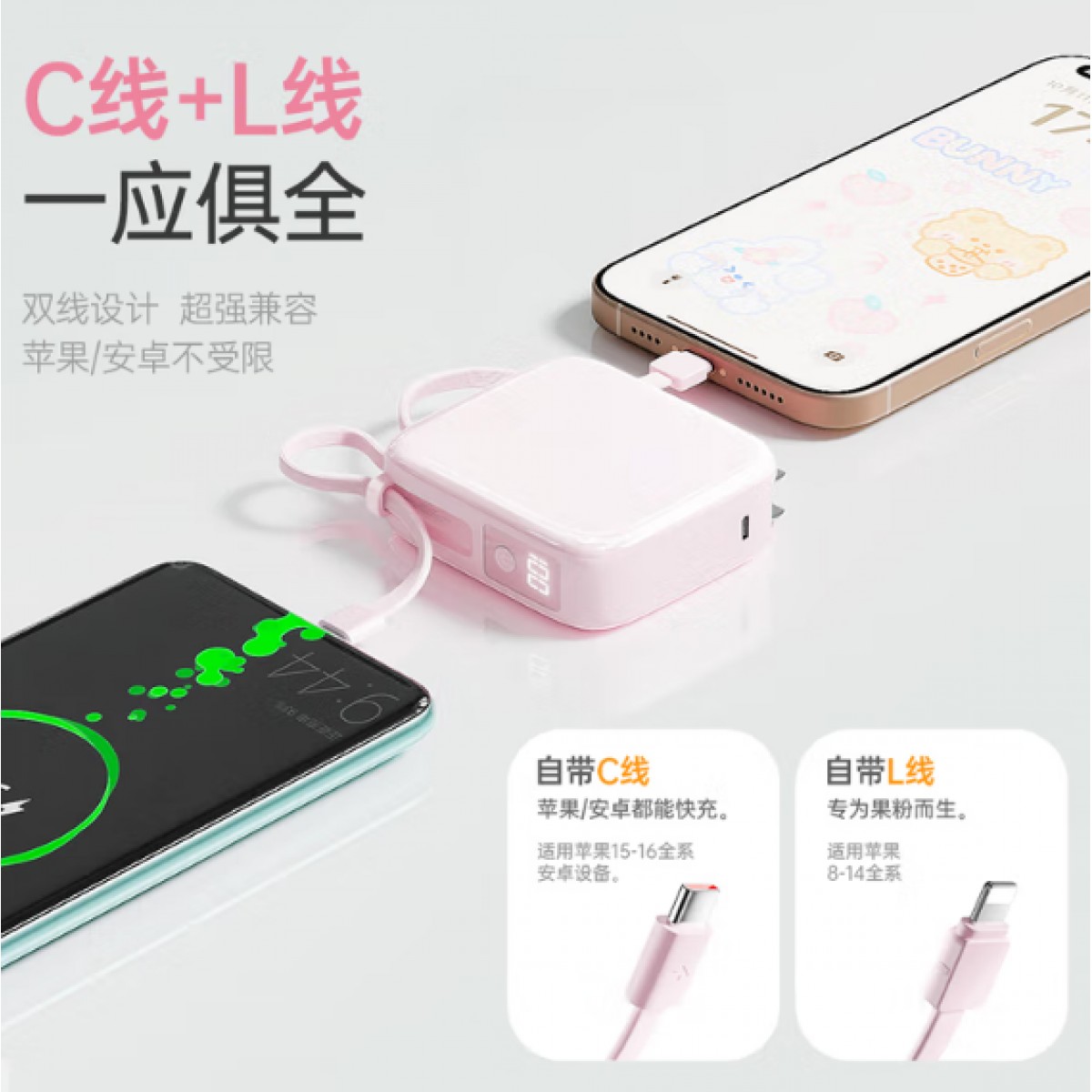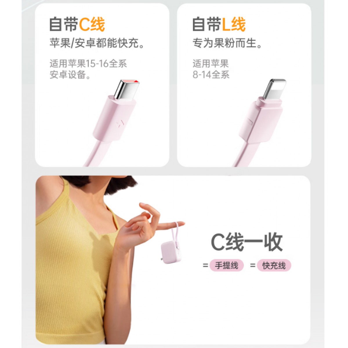 自带充电线 :TYPE-C+Lightning(二种)