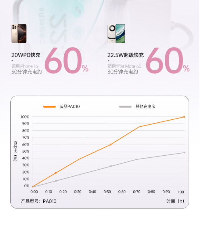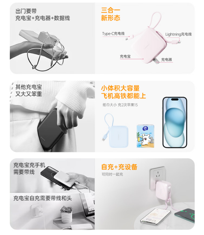 商品名称:沃品PA010三合一充电宝通用三合一AC插头自带线快充移动电源10000mAh PA010 (电商款)