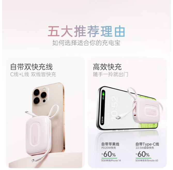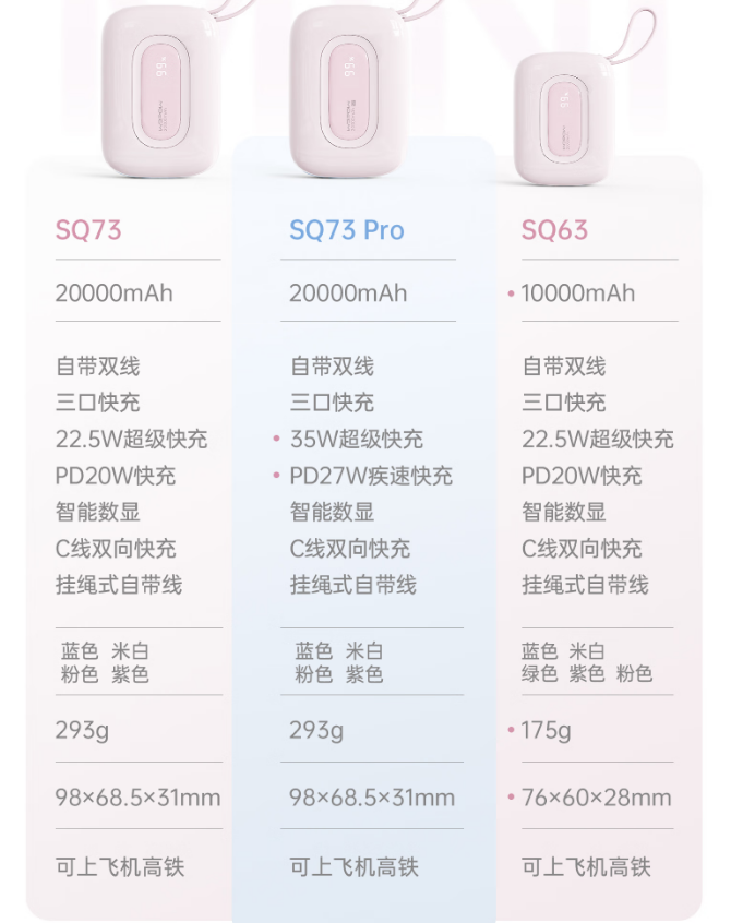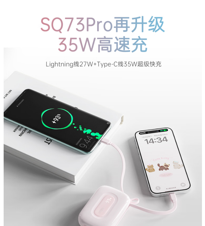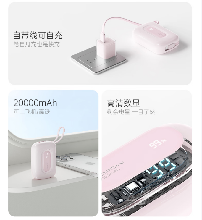 沃品(WOPOW)小彩蛋²快充自带线移动电源20000mAh SQ73Pro (电商款)