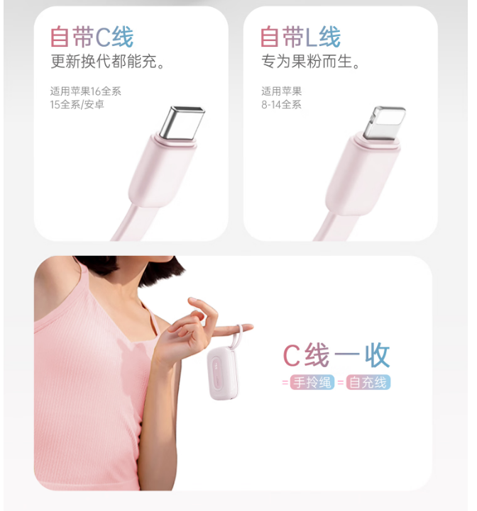 自带充电线 :TYPE-C+Lightning(二种)