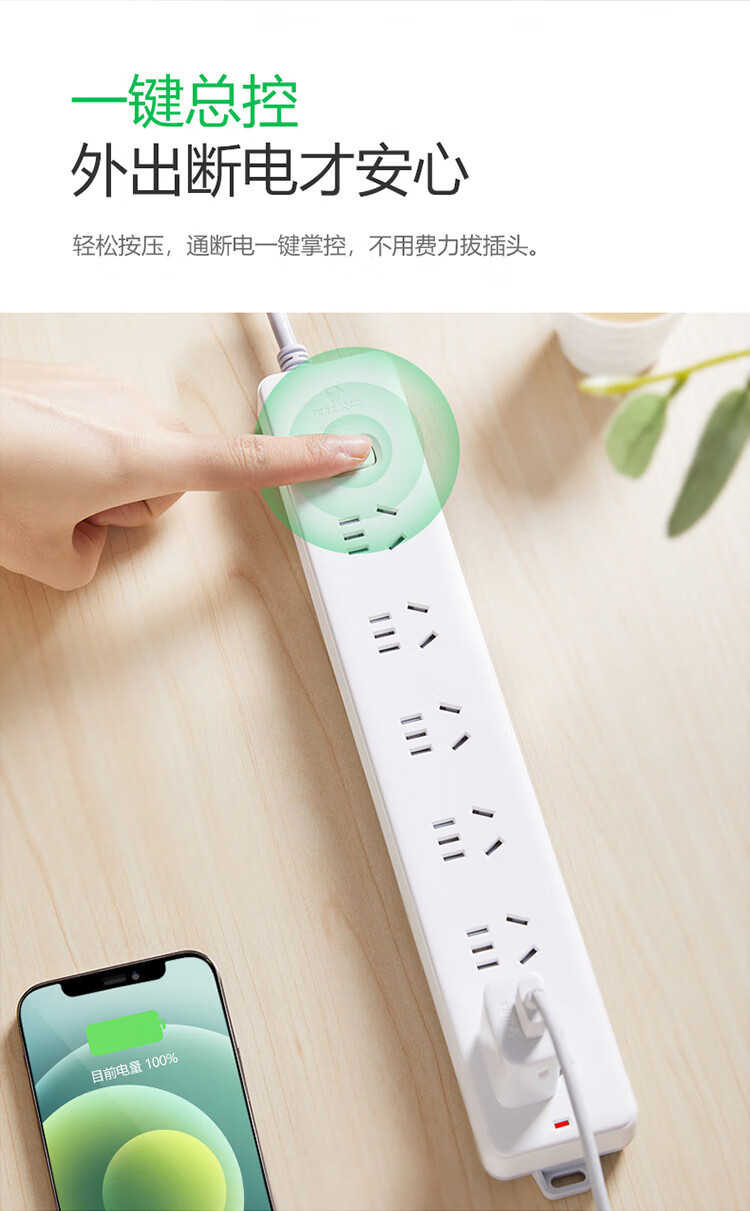 公牛 新国标过载保护插座 3米 GN-107