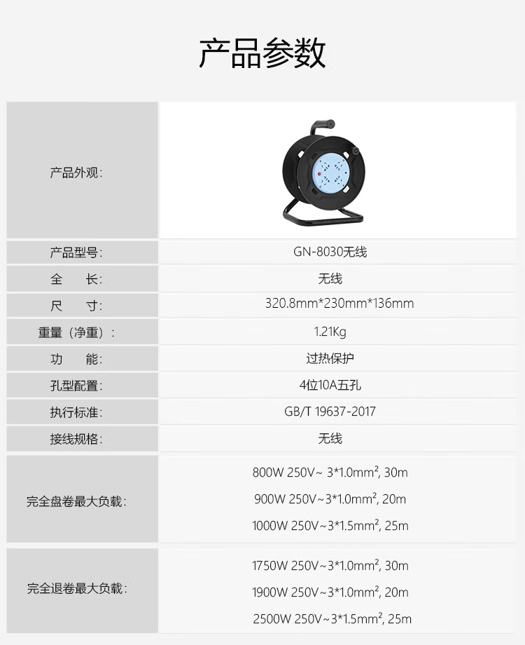 商品名称:公牛 过热保护线盘 30米 GN-8030