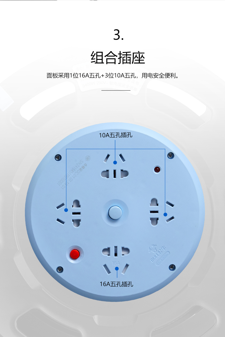 商品名称:公牛 16A漏电、过热保护线盘 50米 GN-806DN