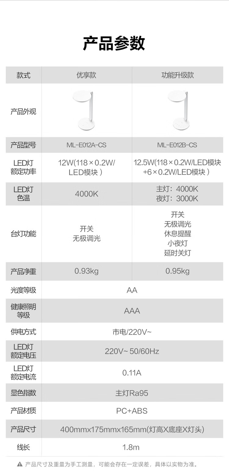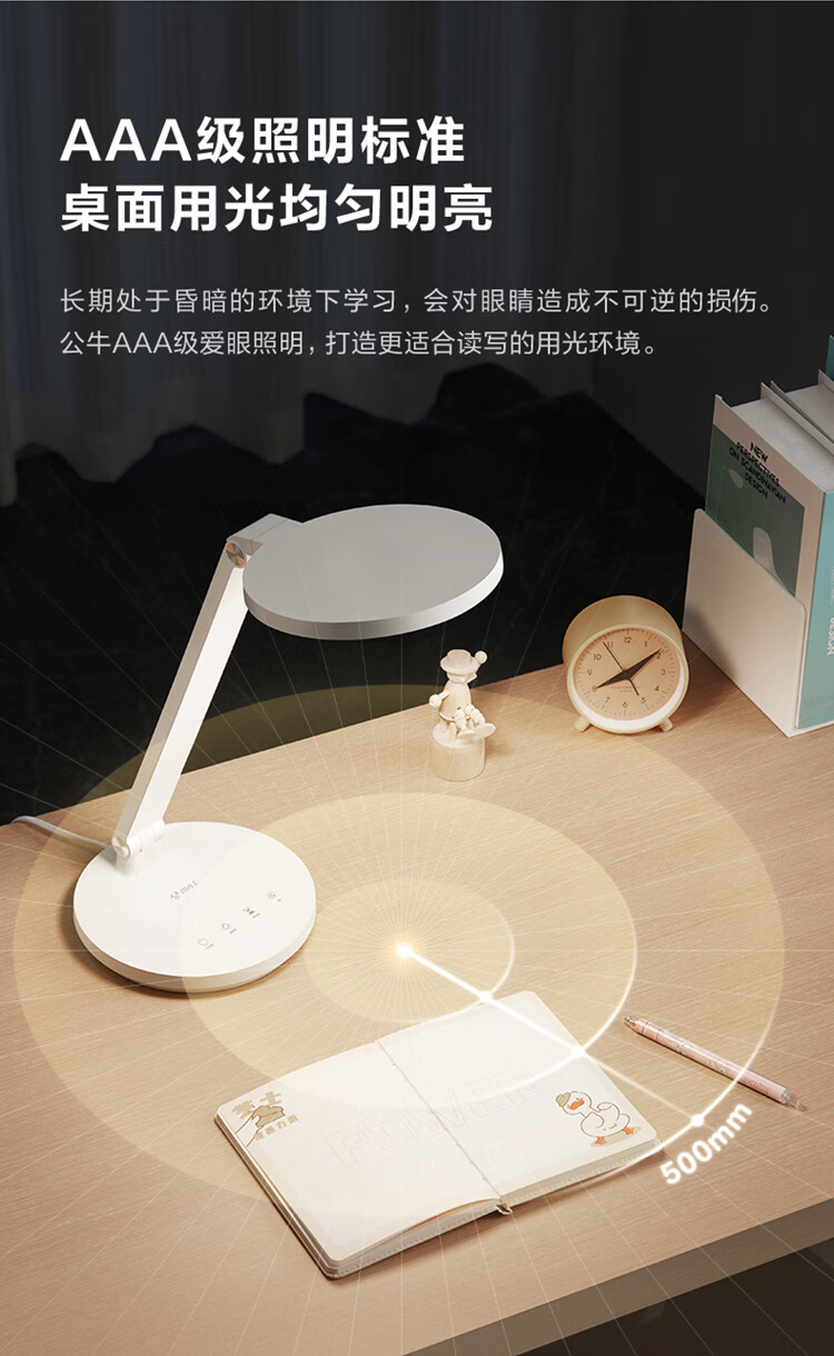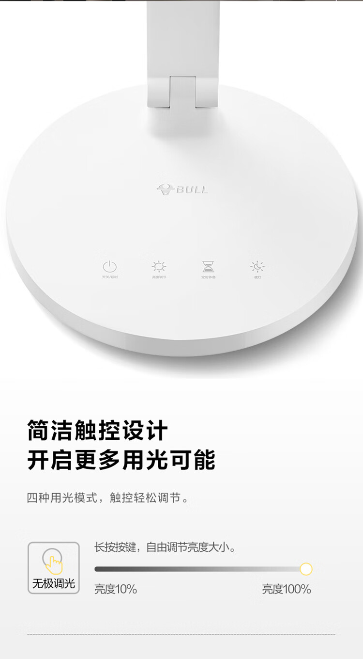 商品名称:公牛 AAA级无极调光延时关灯4000K4键款台灯 12.5W ML-E012B-CS