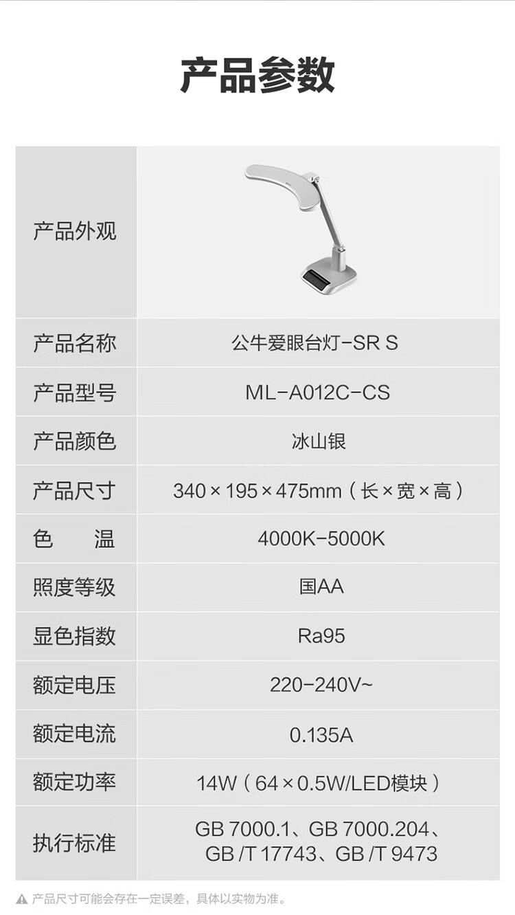 商品名称:公牛 多段调光冰山银台灯 14W ML-A012C-CS