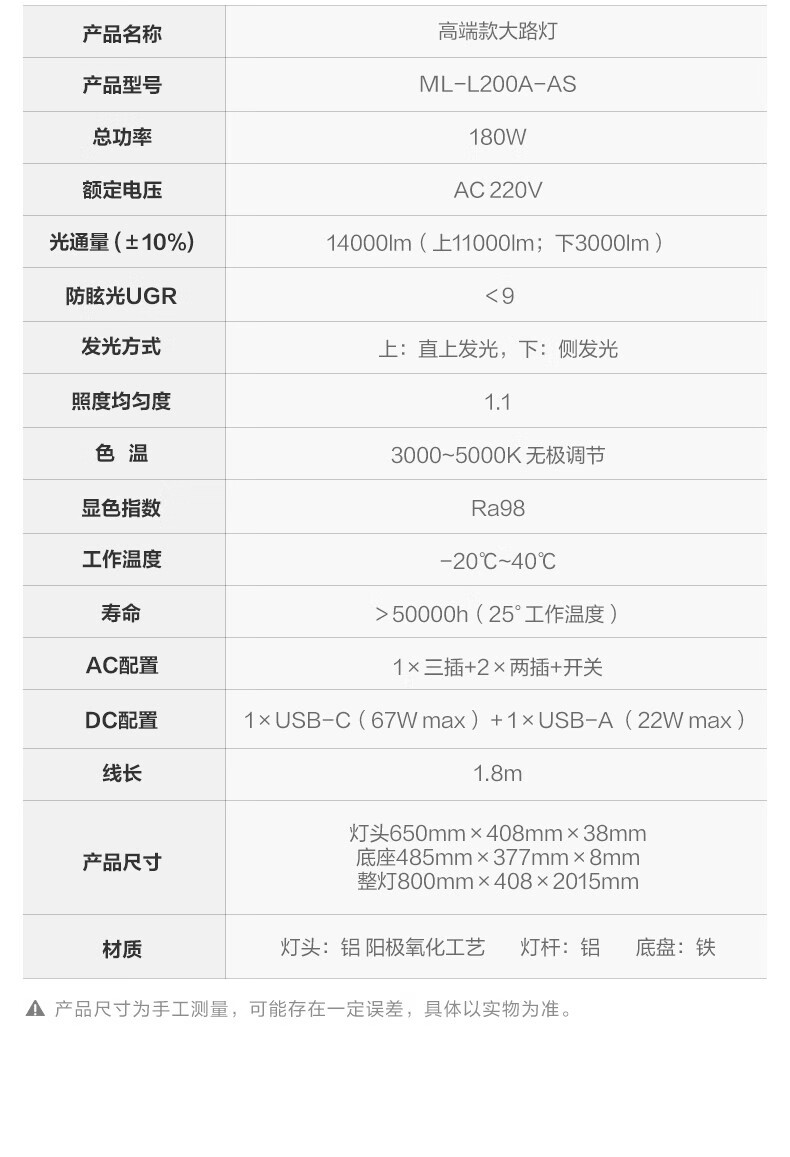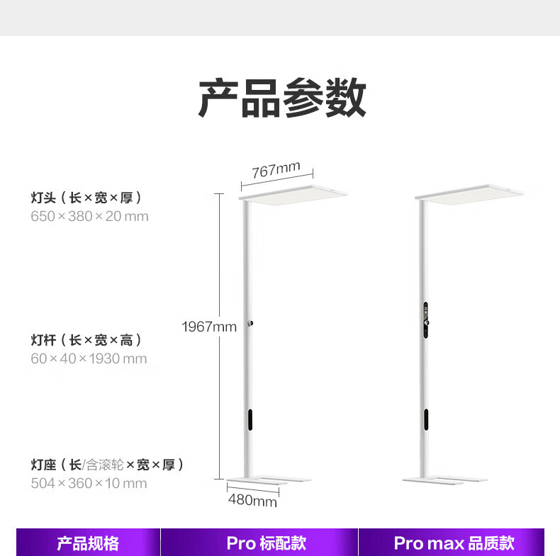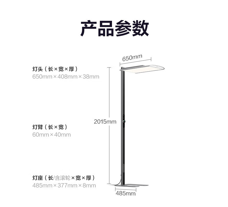 产品尺寸 :灯头650mmx408mmx38mm 底座485mmx377mmx8mm 整灯800mmx408x2015mm