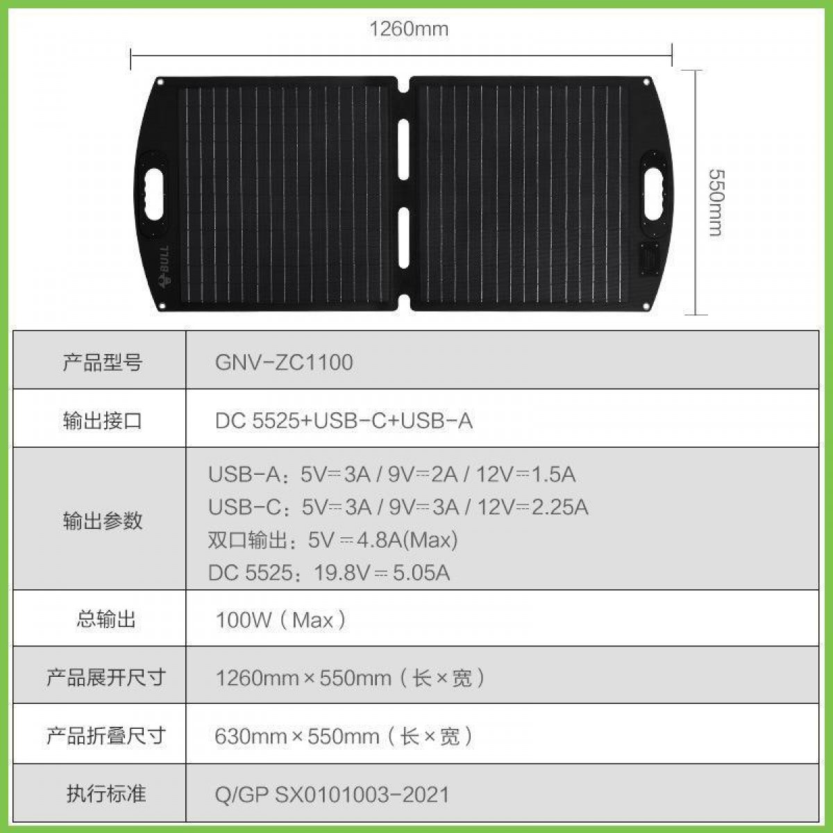 商品名称:公牛 太阳能充电板 100w GNV-ZC1100