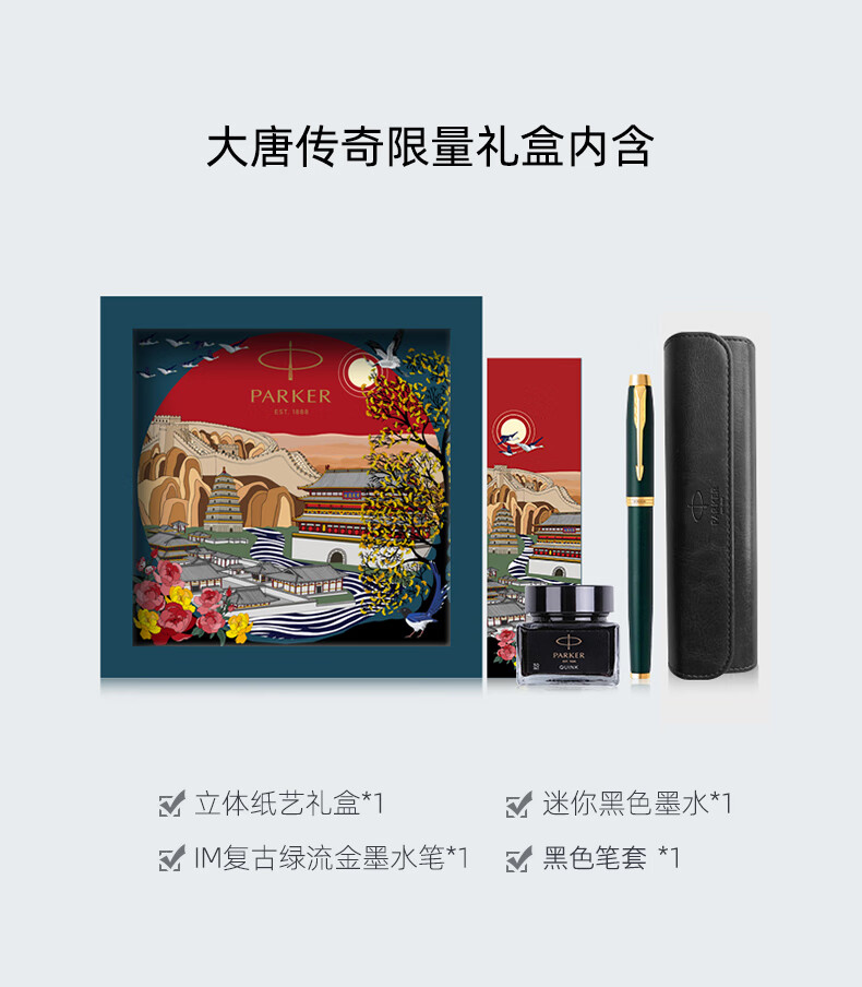 商品名称:派克(PARKER)大唐盛世礼盒派克IM复古绿流金墨水笔