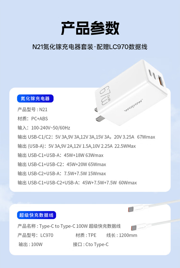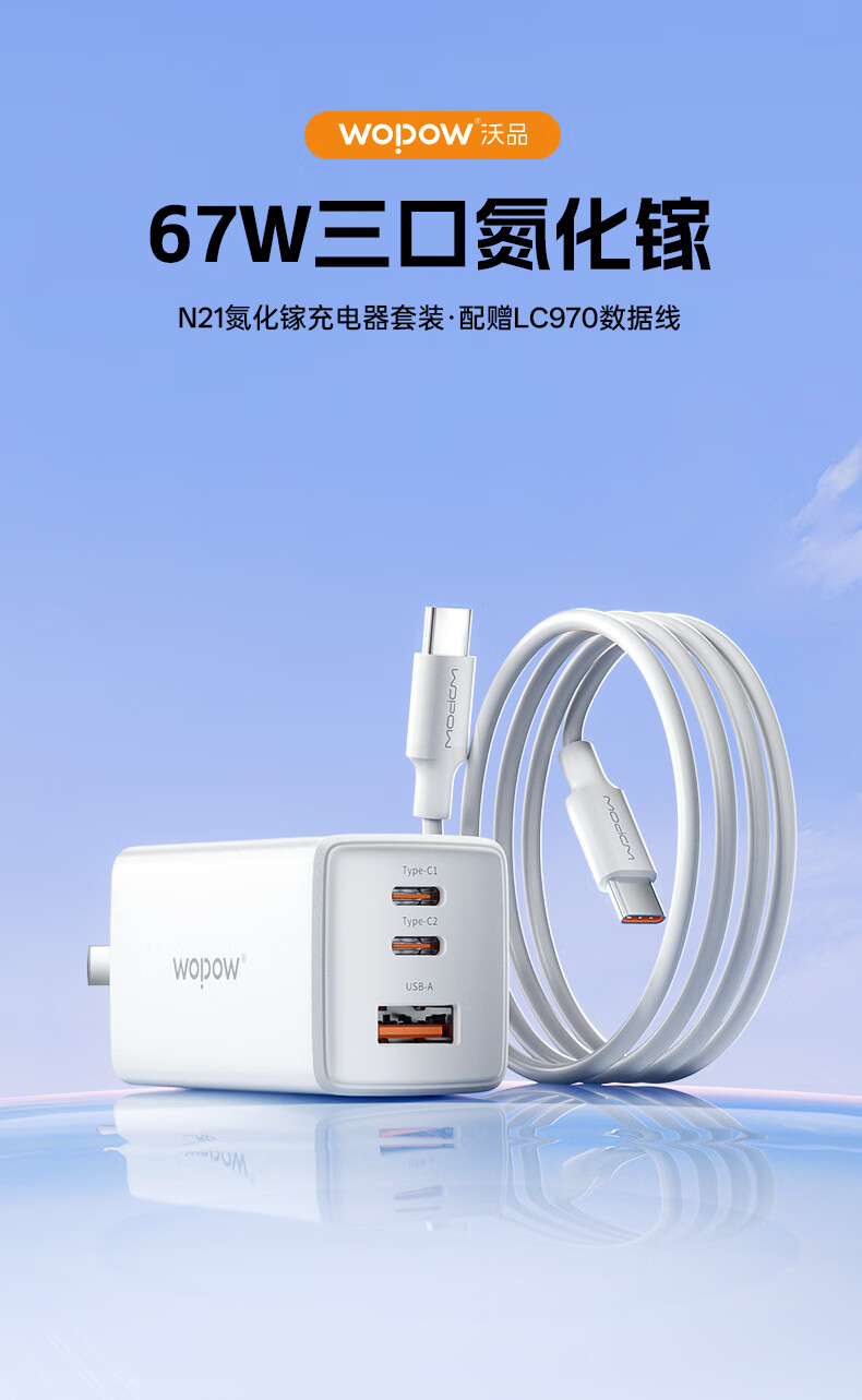商品名称:沃品 67W氮化镓充电器套装 N21