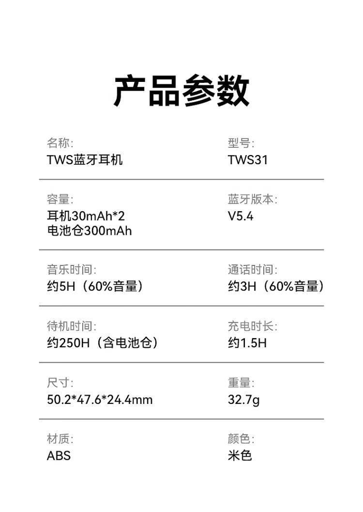 商品名称:沃品 TWS蓝牙耳机 TWS31