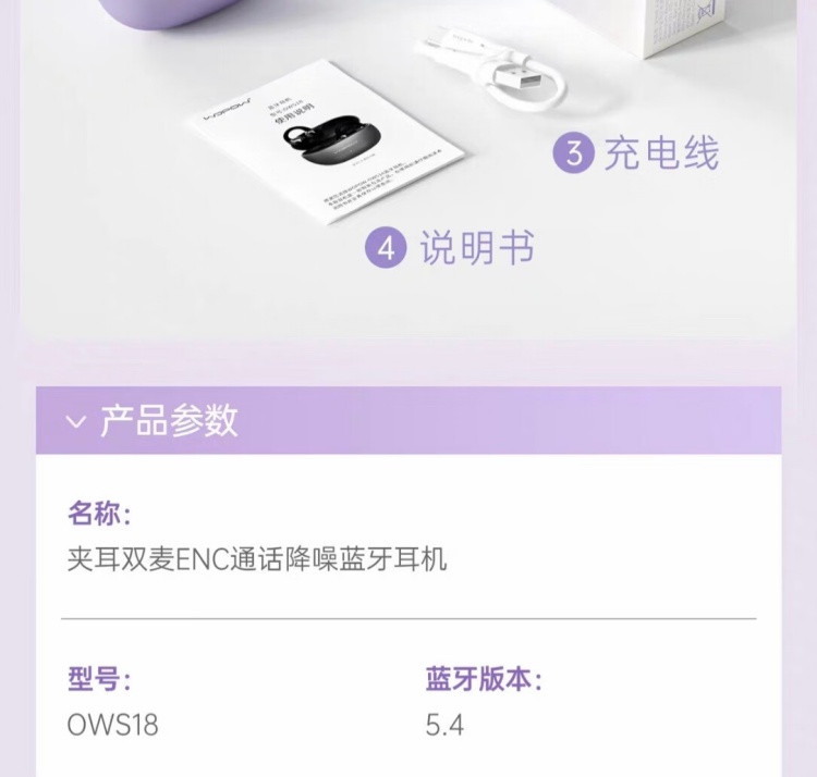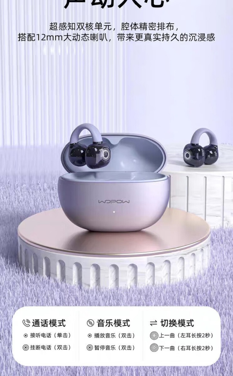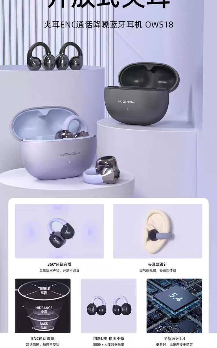 商品名称:沃品 夹耳双麦ENC通话降噪蓝牙耳机 OWS18(电商款)