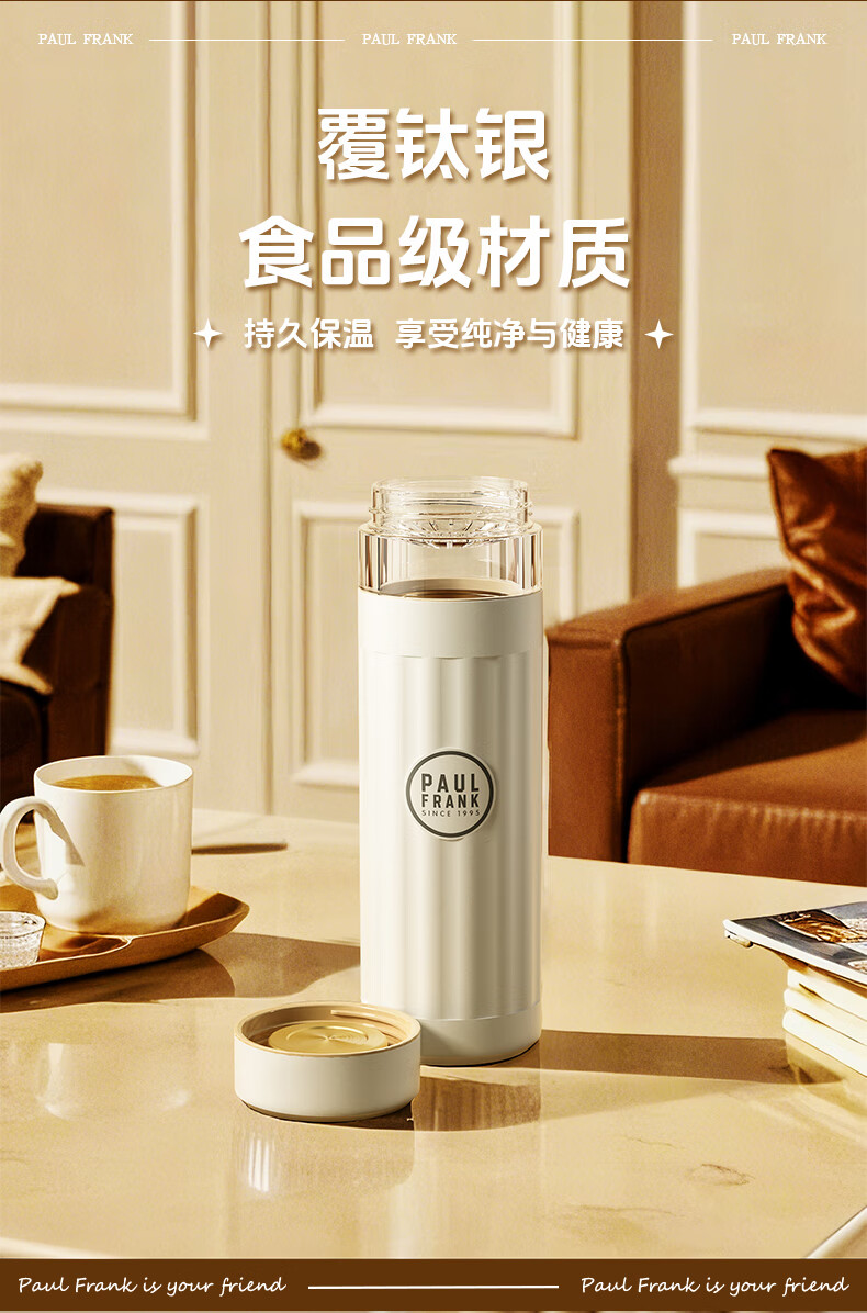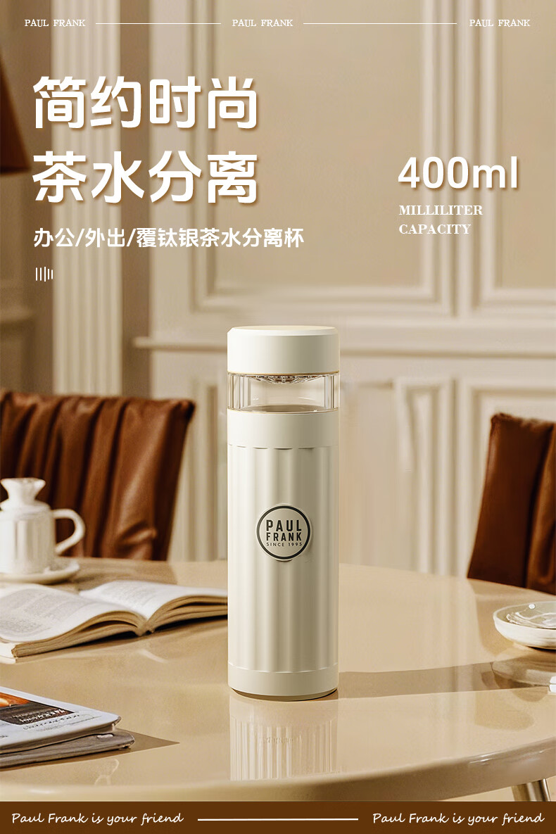 大嘴猴 Paul Frank 茶水分离保温杯覆钛银 400ML PFC928