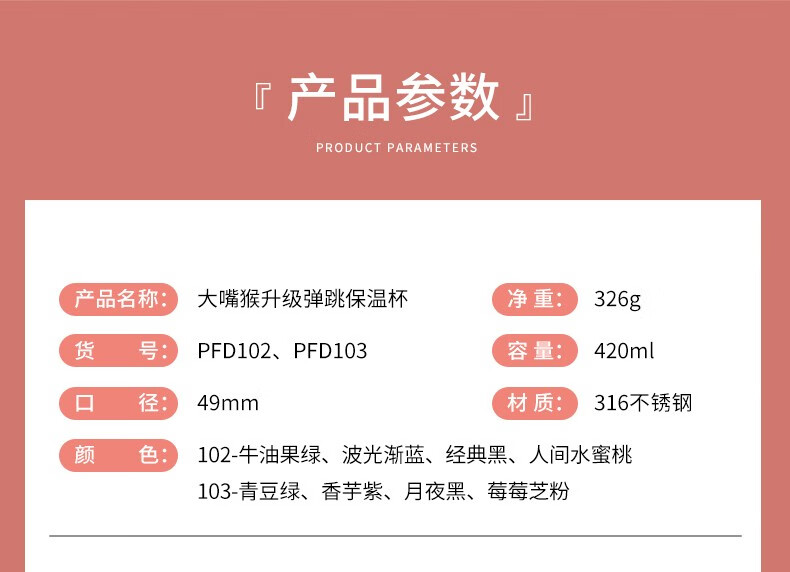 商品名称:大嘴猴 Paul Frank 保温杯 420ML PFD102