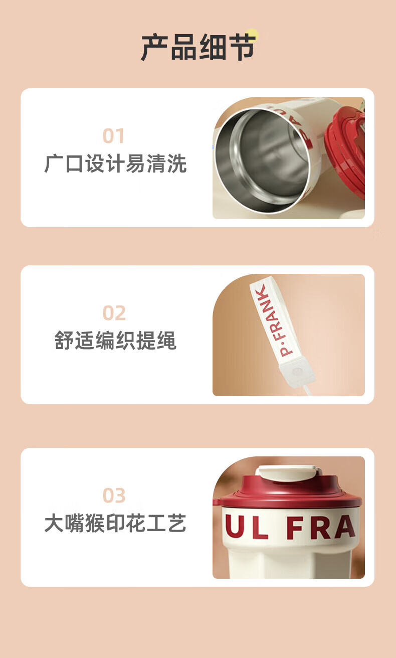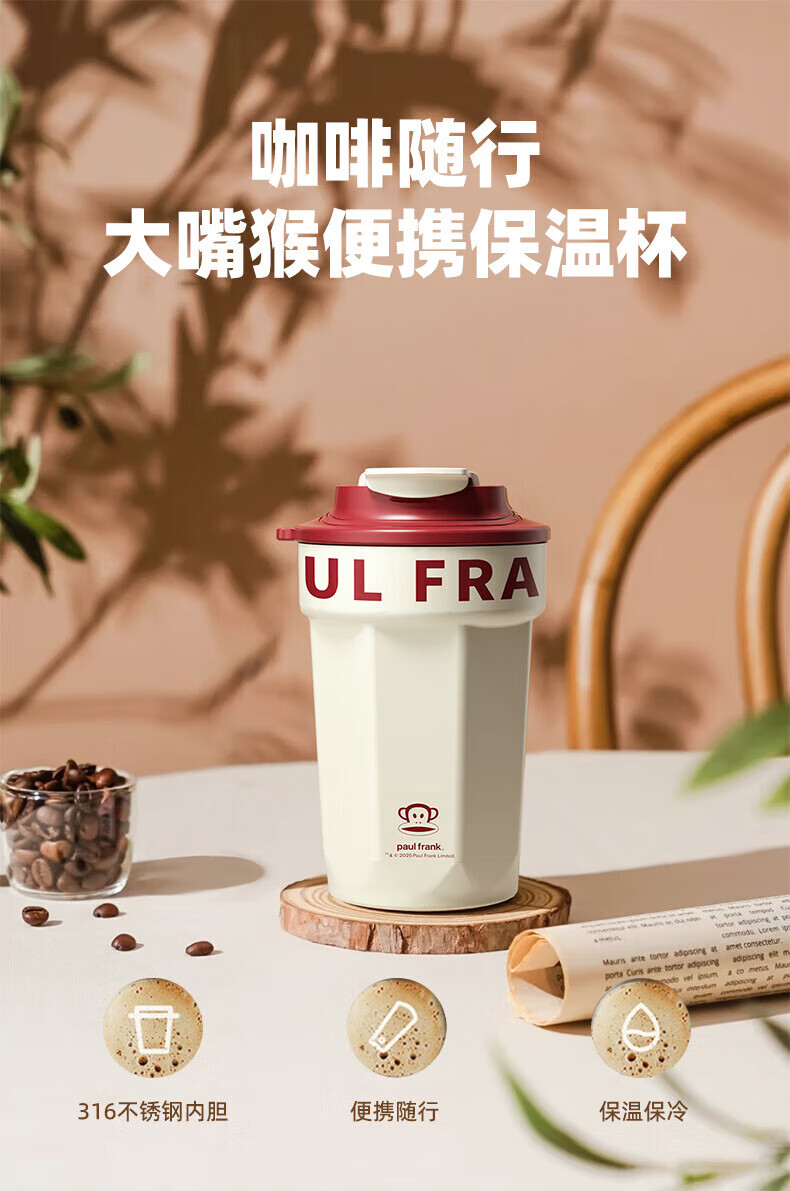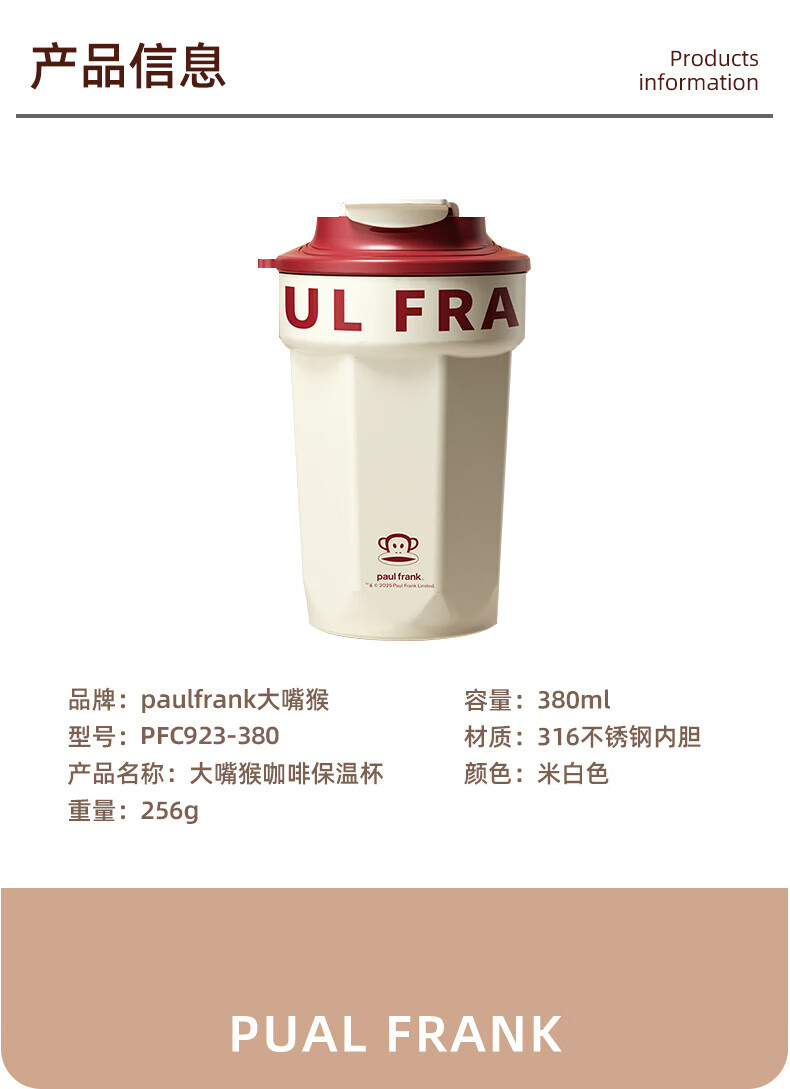 商品名称:大嘴猴 Paul Frank 咖啡随行保温杯 380ML PFC933-380