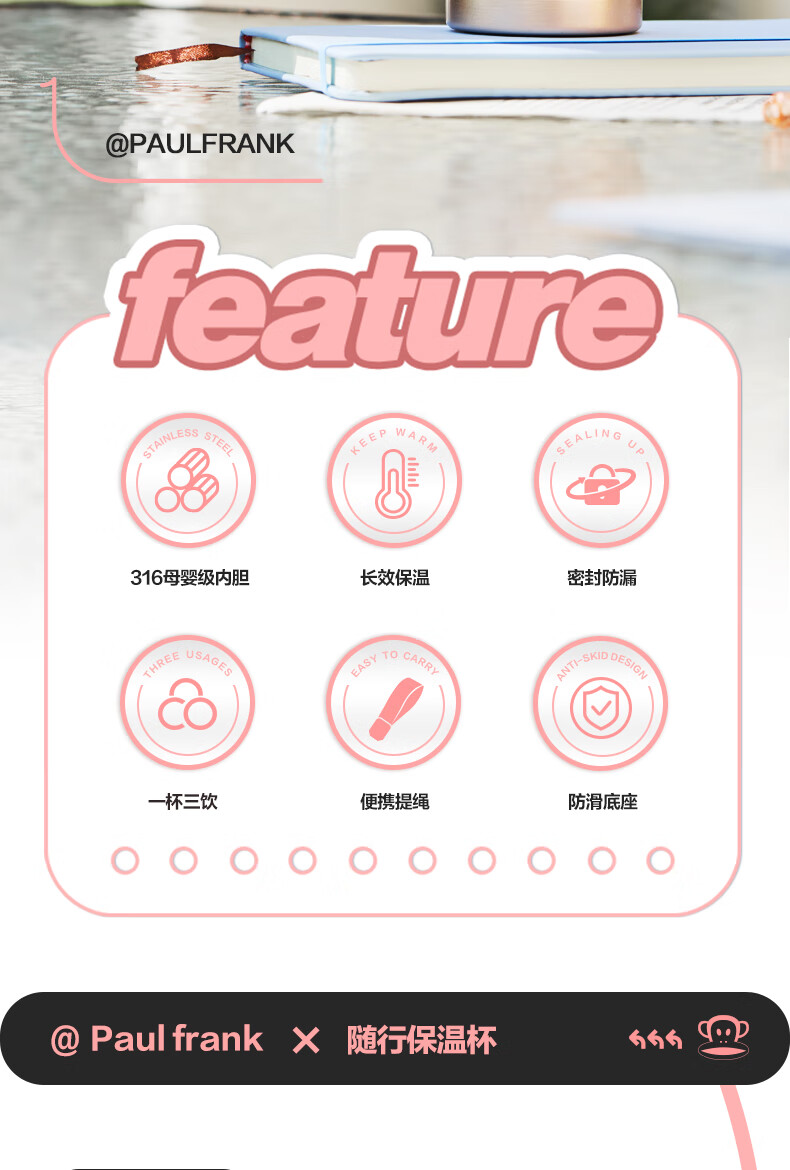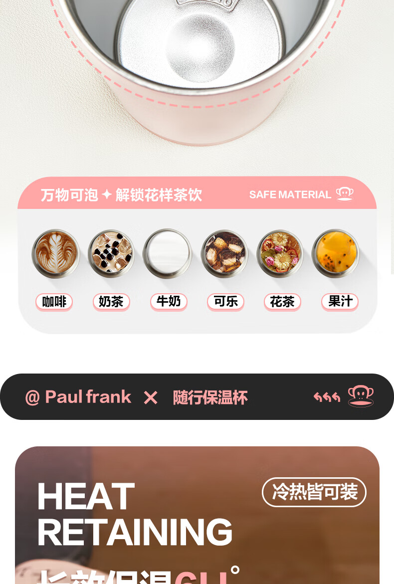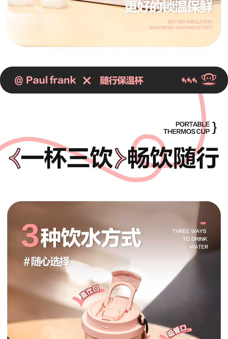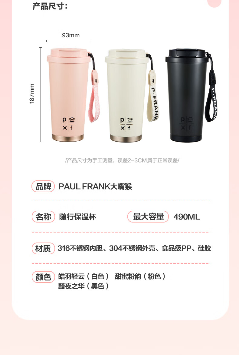 商品名称:大嘴猴 Paul Frank 双饮咖啡保温杯 490ML PFC919