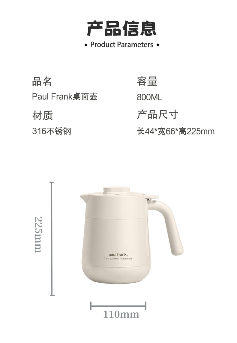商品名称:大嘴猴 Paul Frank 桌面壶 800ML PFC811