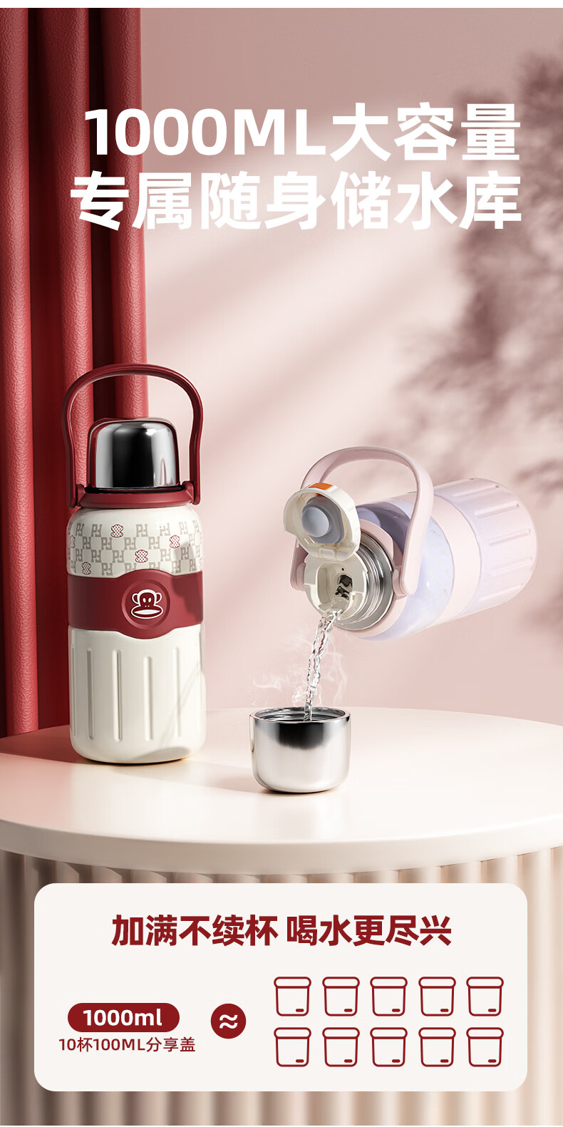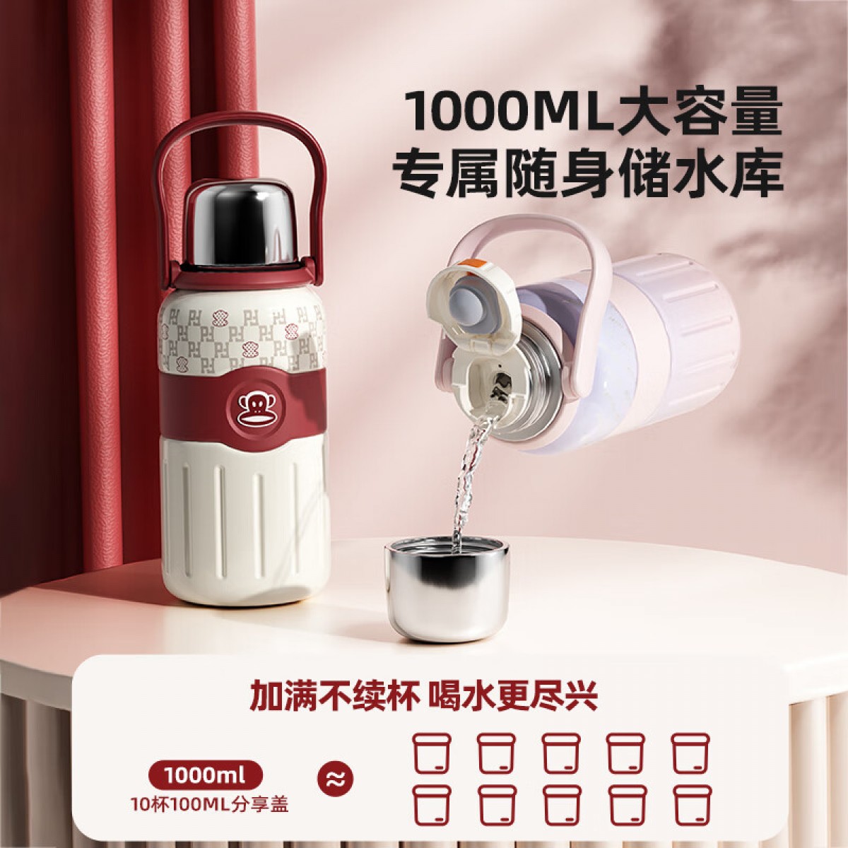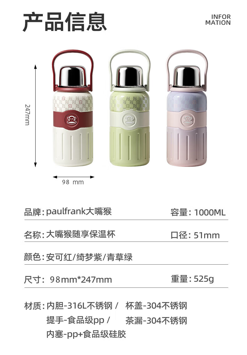 商品名称:大嘴猴 Paul Frank 一杯双饮带茶隔保温杯 1000ML PFC099