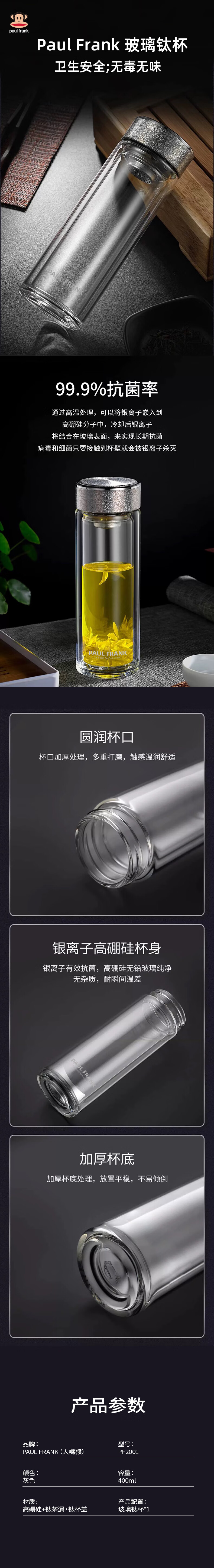 商品名称:大嘴猴 Paul Frank 玻璃钛杯 400ml PF2001