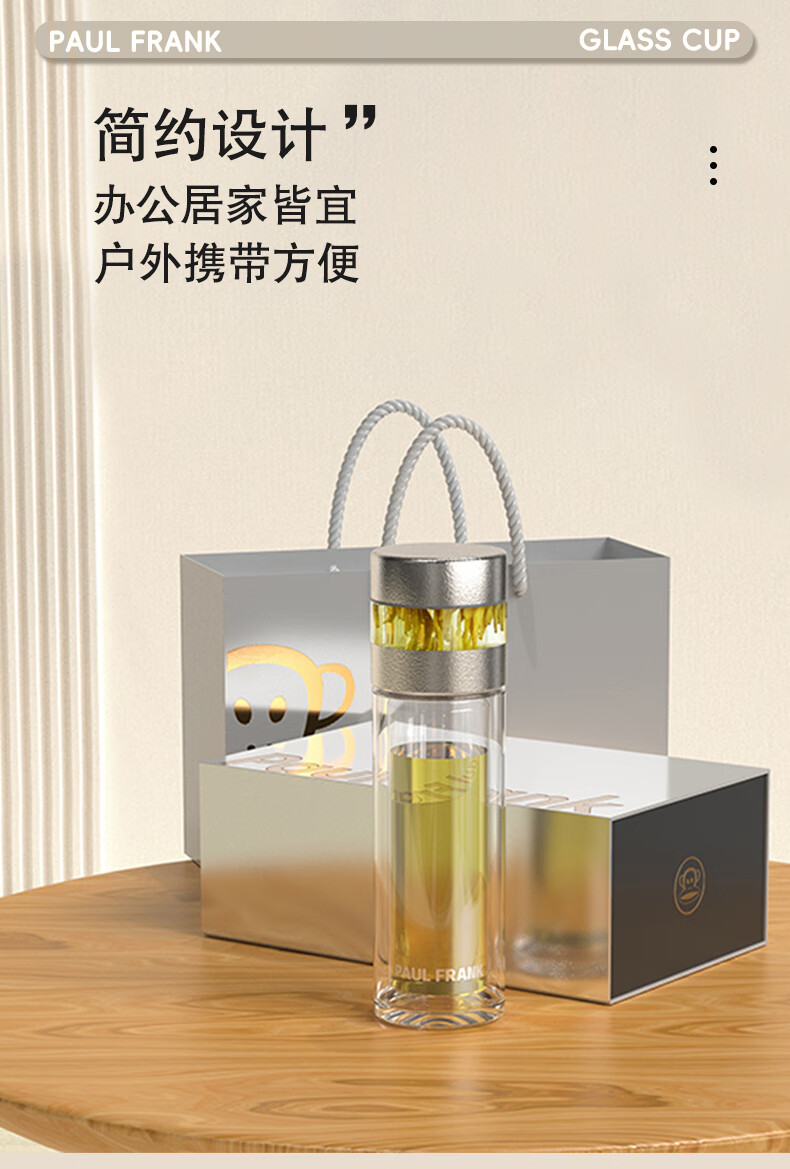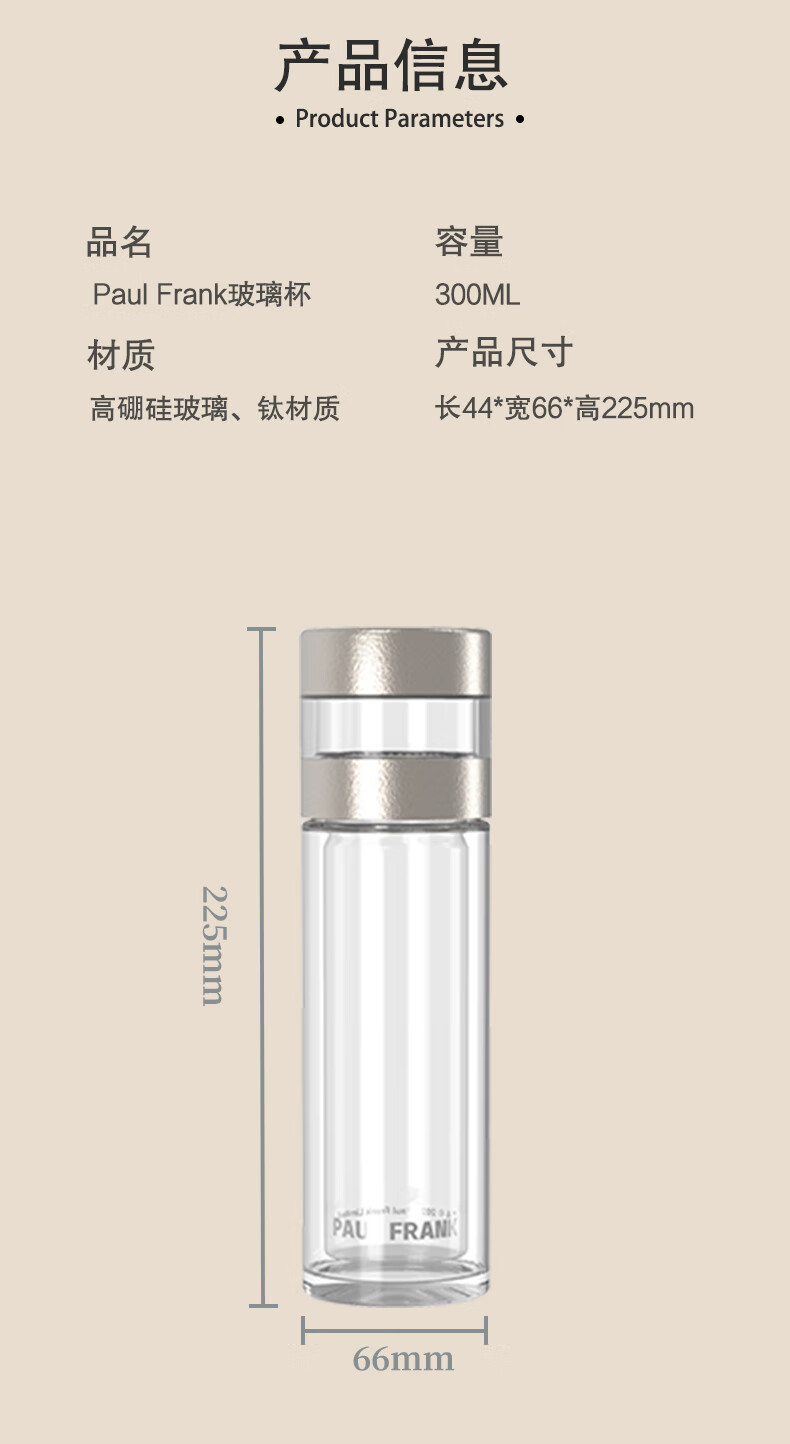 商品名称:大嘴猴 双层钛玻璃杯(钛网钛盖)300ML PFC833