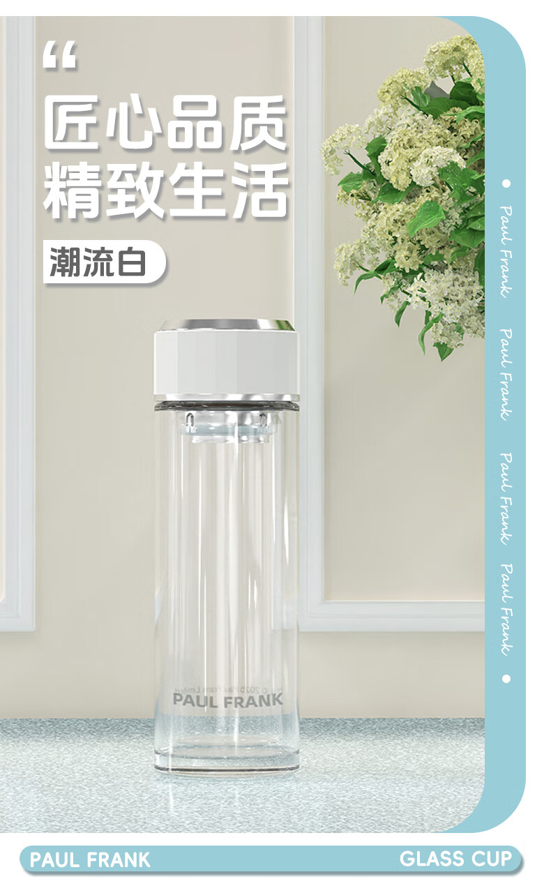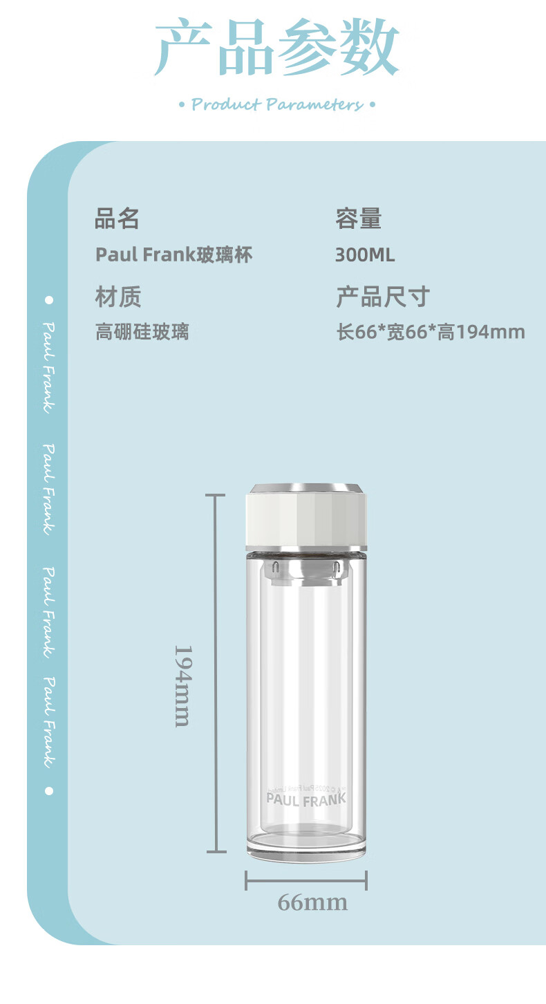 商品名称:大嘴猴 Paul Frank 双层玻璃杯(带茶漏)300ML PFC836
