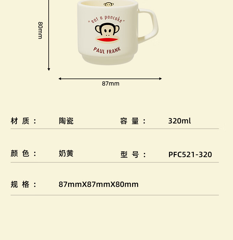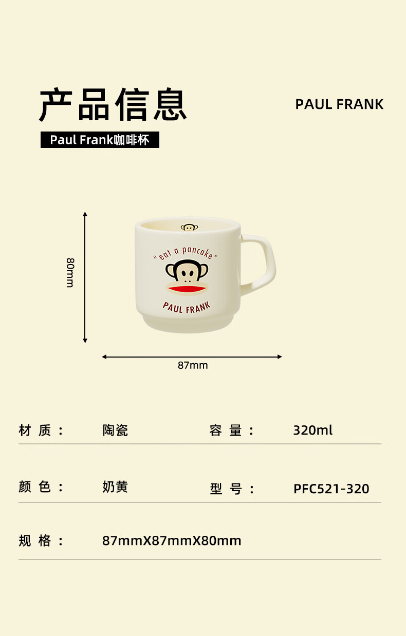 商品名称:大嘴猴 Paul Frank 经典马克杯 320ML PFC521-320