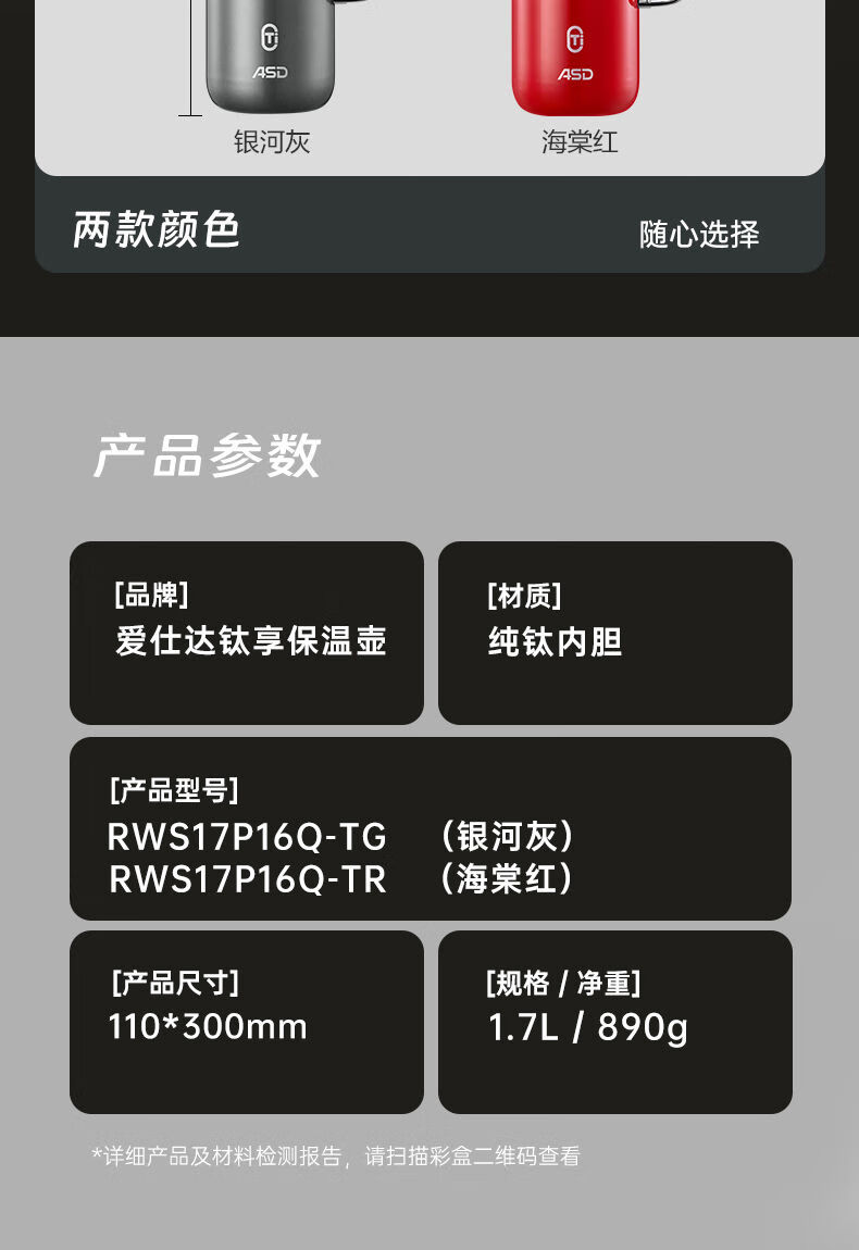 商品名称:爱仕达 钛享系列保温壶 1.7L RWS17P16Q-TR