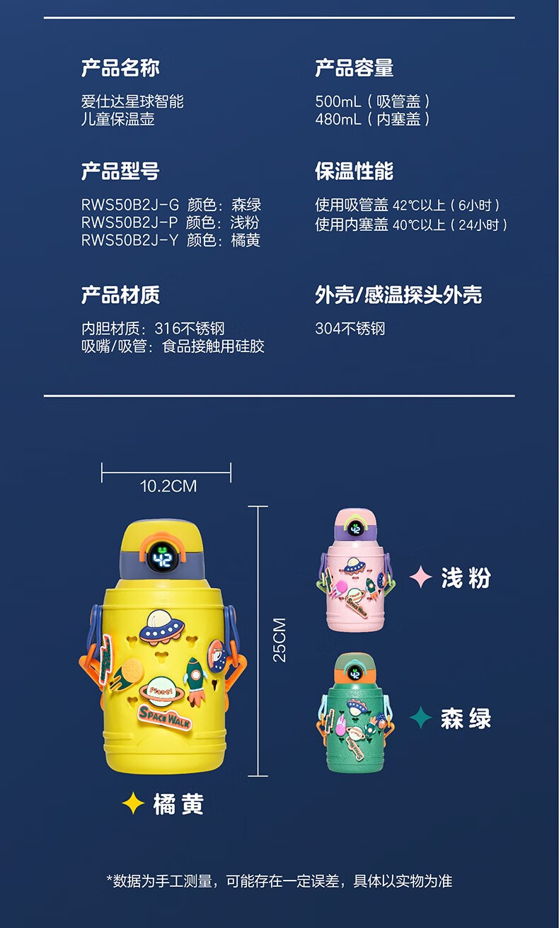 爱仕达 钛享咖啡杯 450ml RWS50B2J-P(浅粉)/RWS50B2J-Y(橘黄)/RWS50B2J-G(森绿)
