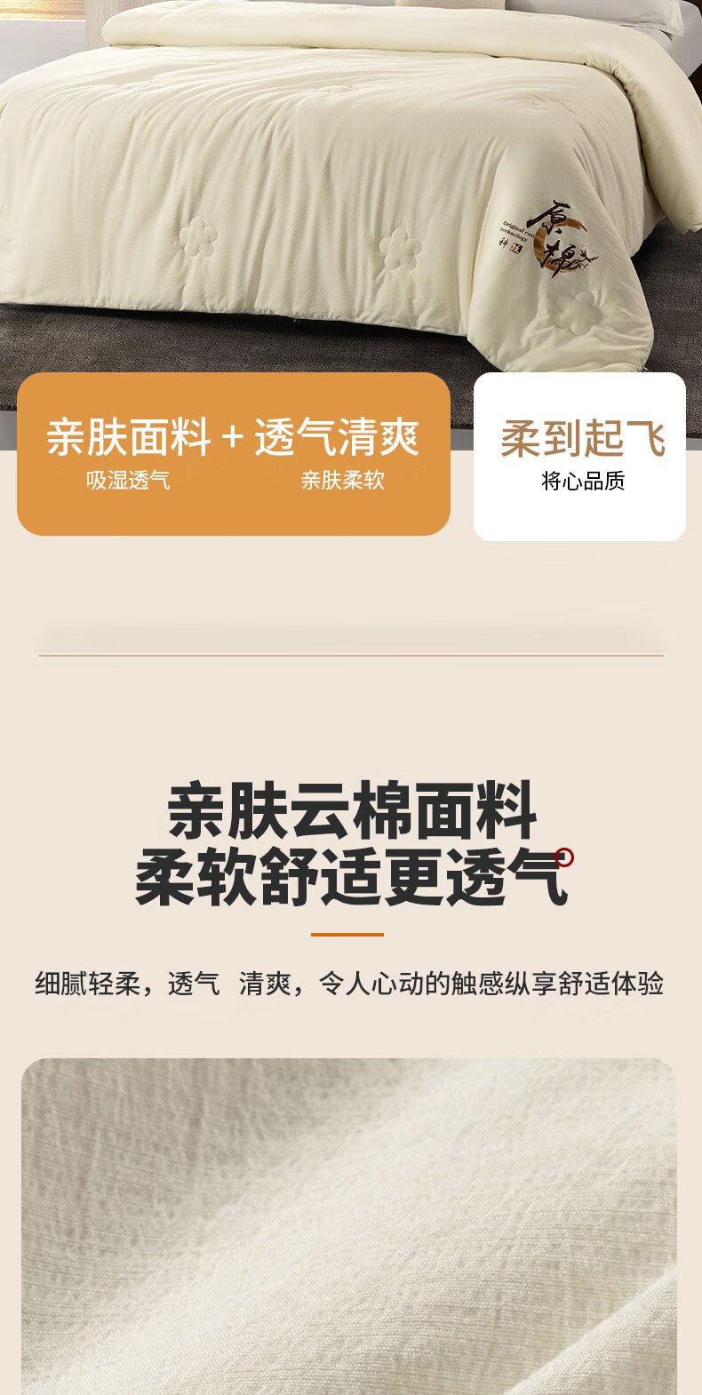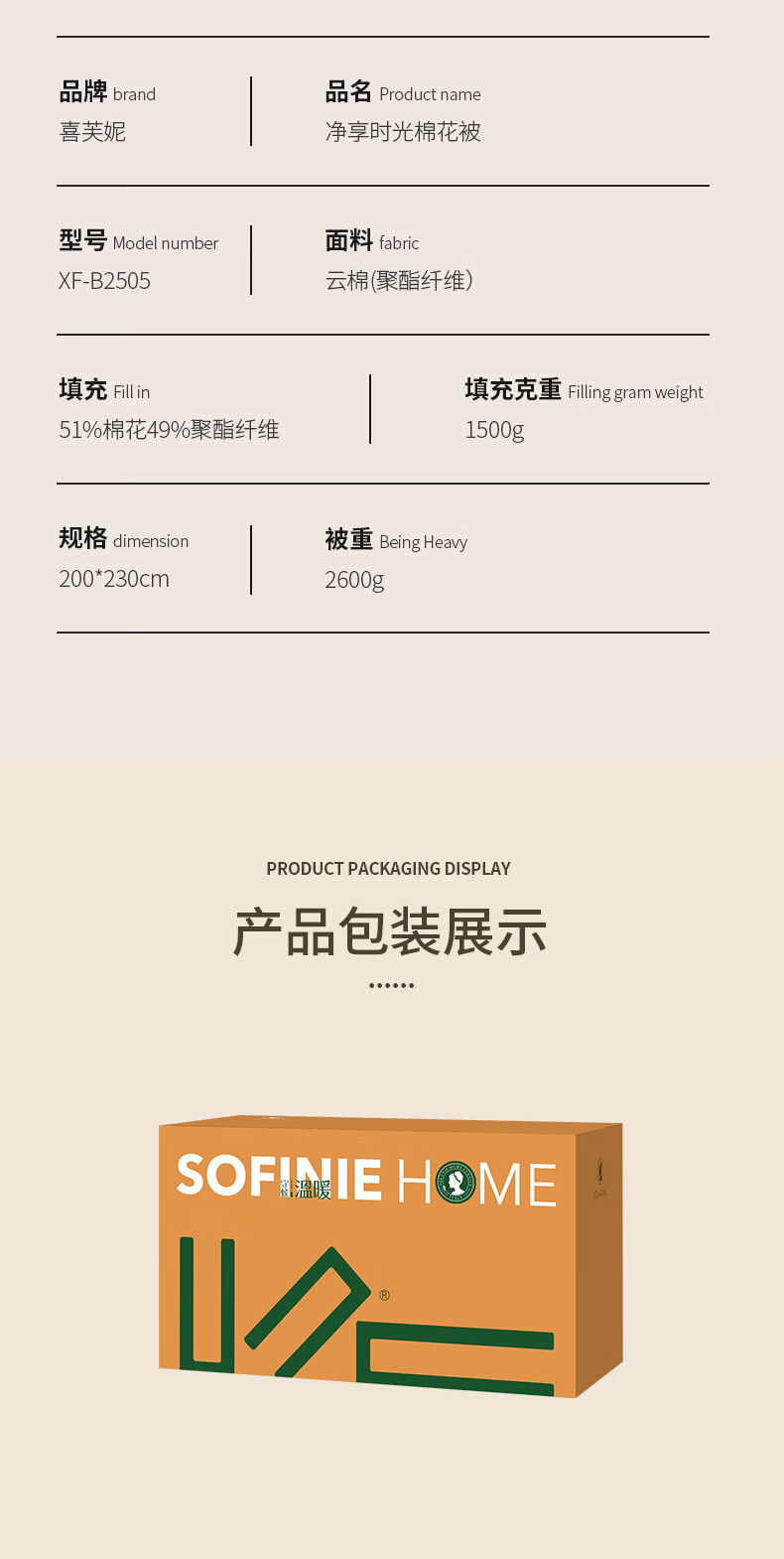 商品名称:喜芙妮 净享时光棉花被 200*230cm 2600g XF-B2505