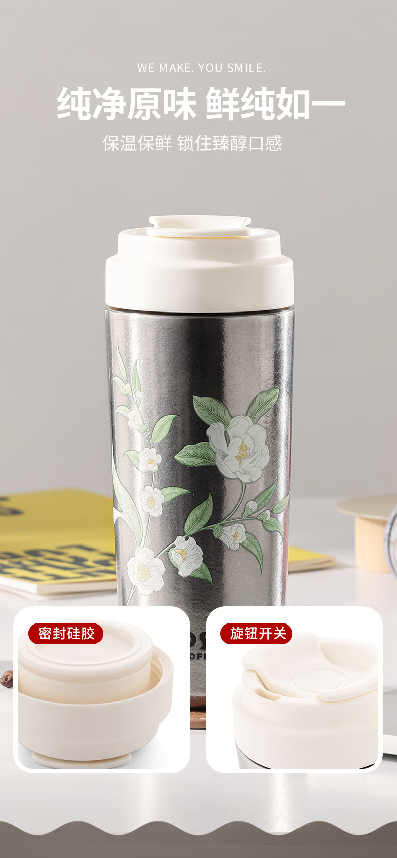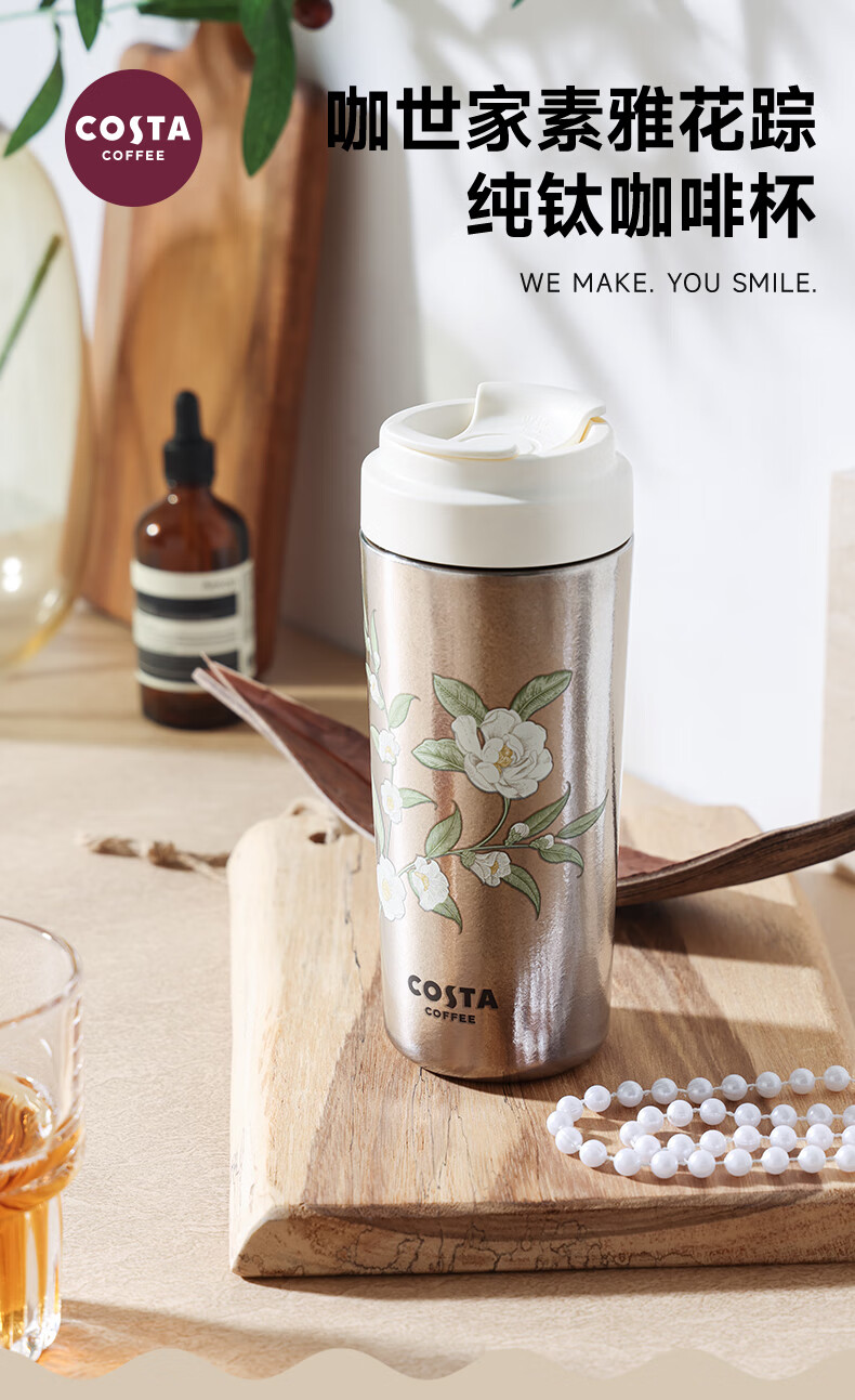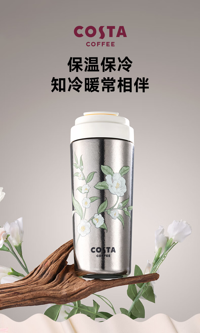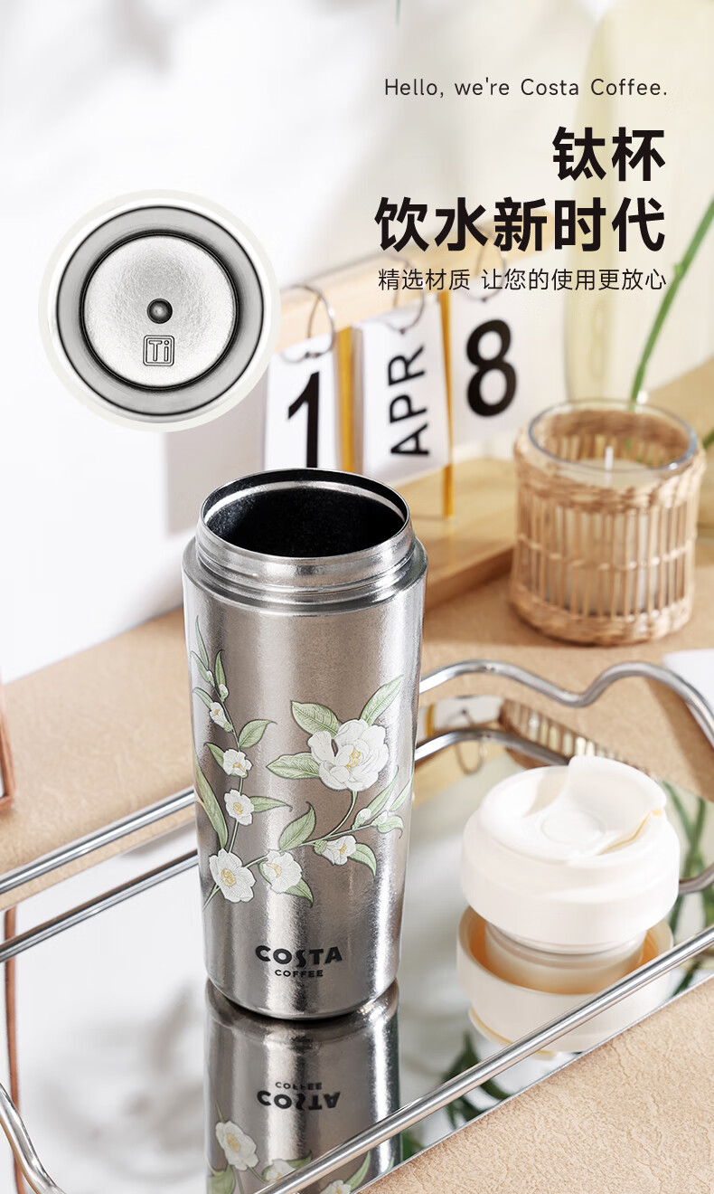 咖世家 纯钛咖啡杯 480ML COS-2765-480(素雅花踪)/COS-2772-480(都市银锋)