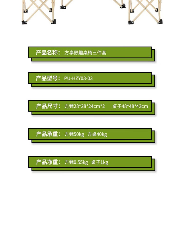产品净重 :方凳0.55kg 桌子1kg