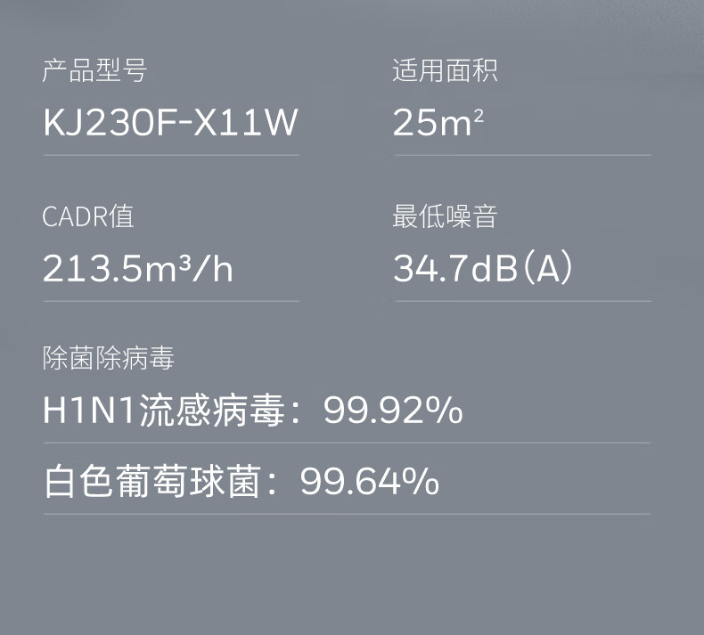 CADR(颗粒物) :220-230m³/h