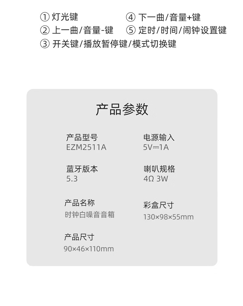 商品名称:几光 时钟白噪音音箱 3W EZM2511A