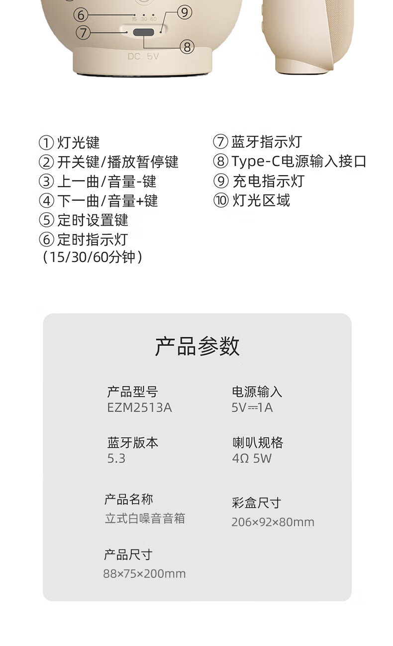 商品名称:几光 立式白噪音音箱 5W EZM2513A