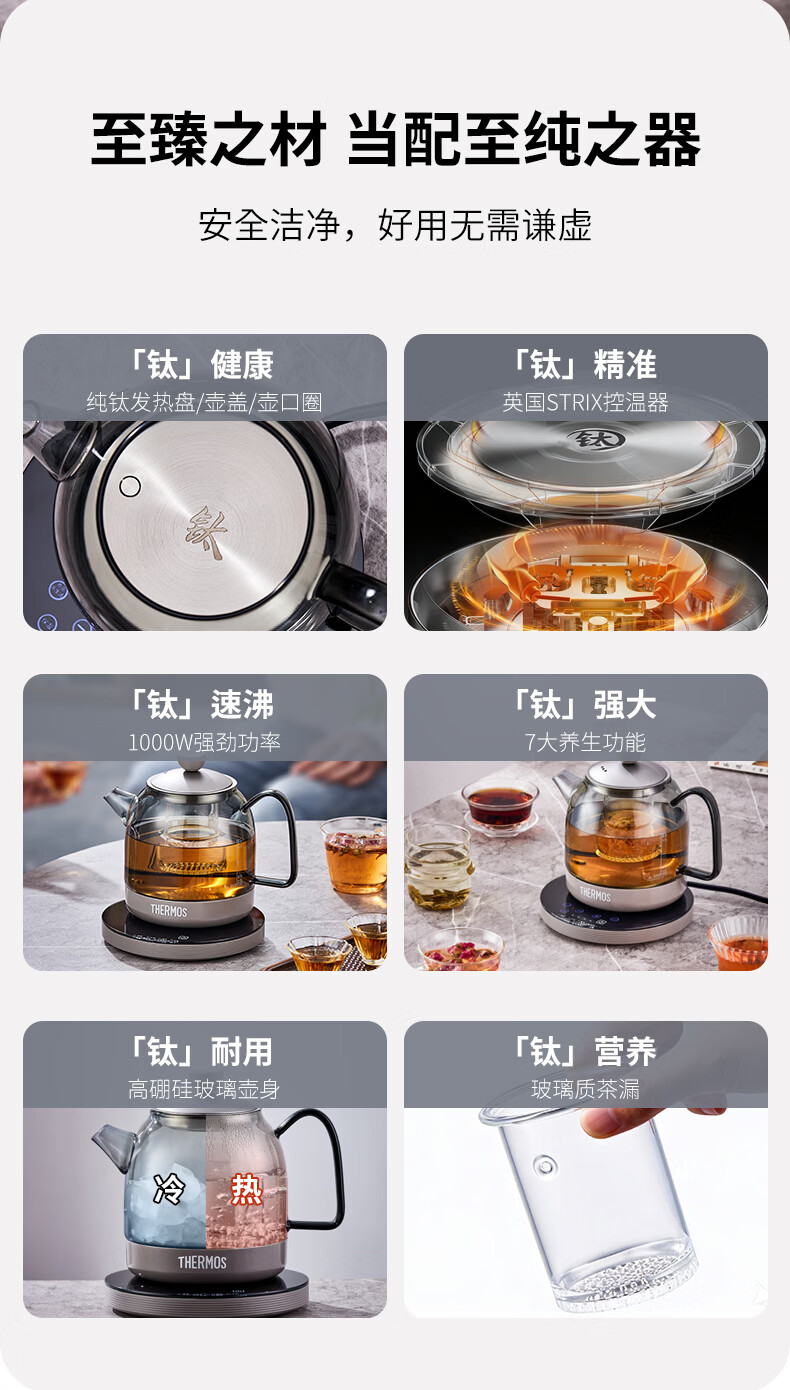 商品名称:膳魔师 钛茗茶养生壶曜石黑 800W EHA-1605E